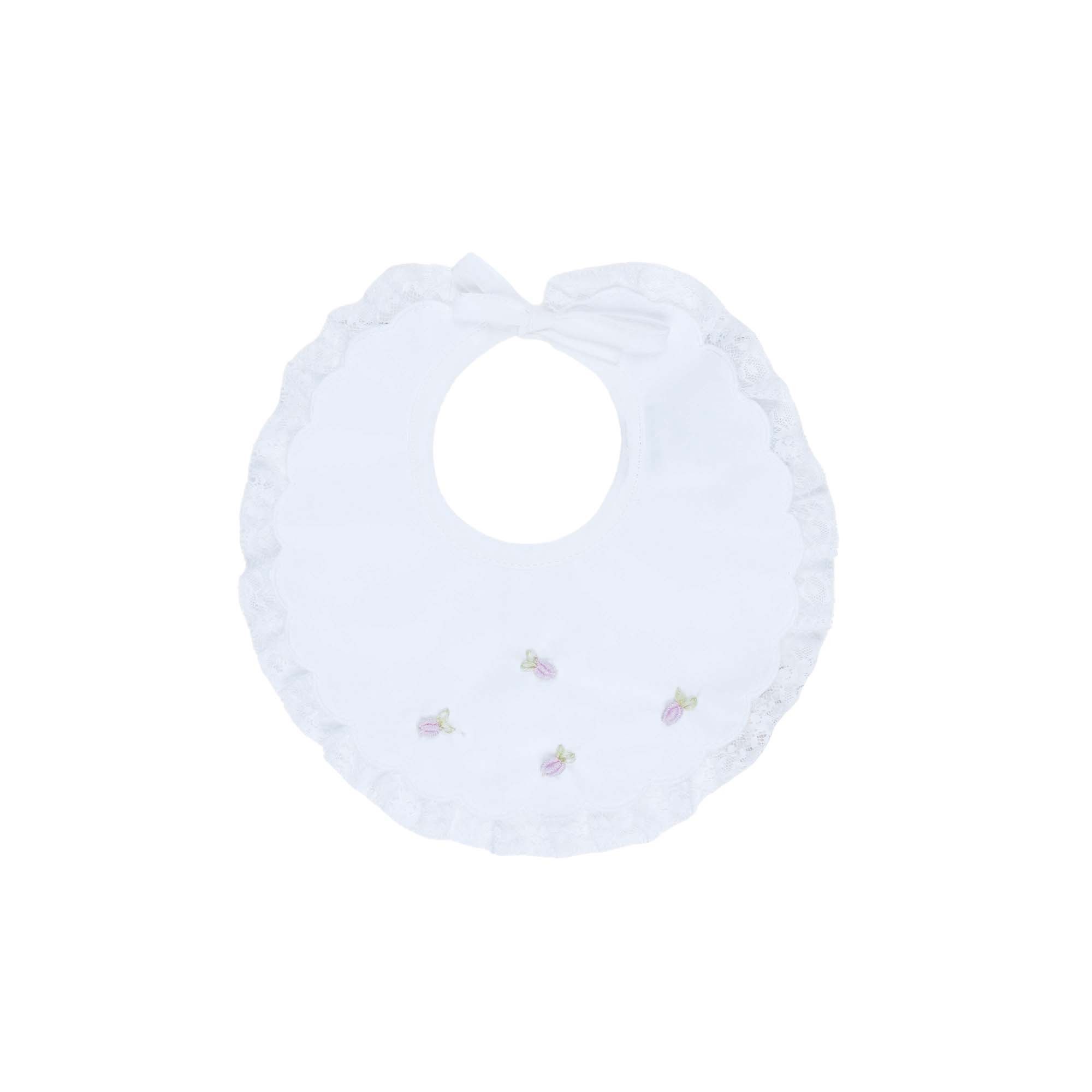 MARLU' Bavetta bianca con roselline lilla neonata