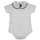 LITTLE BEAR Body  cotone manica corta colletto tondo bianco e blu neonato