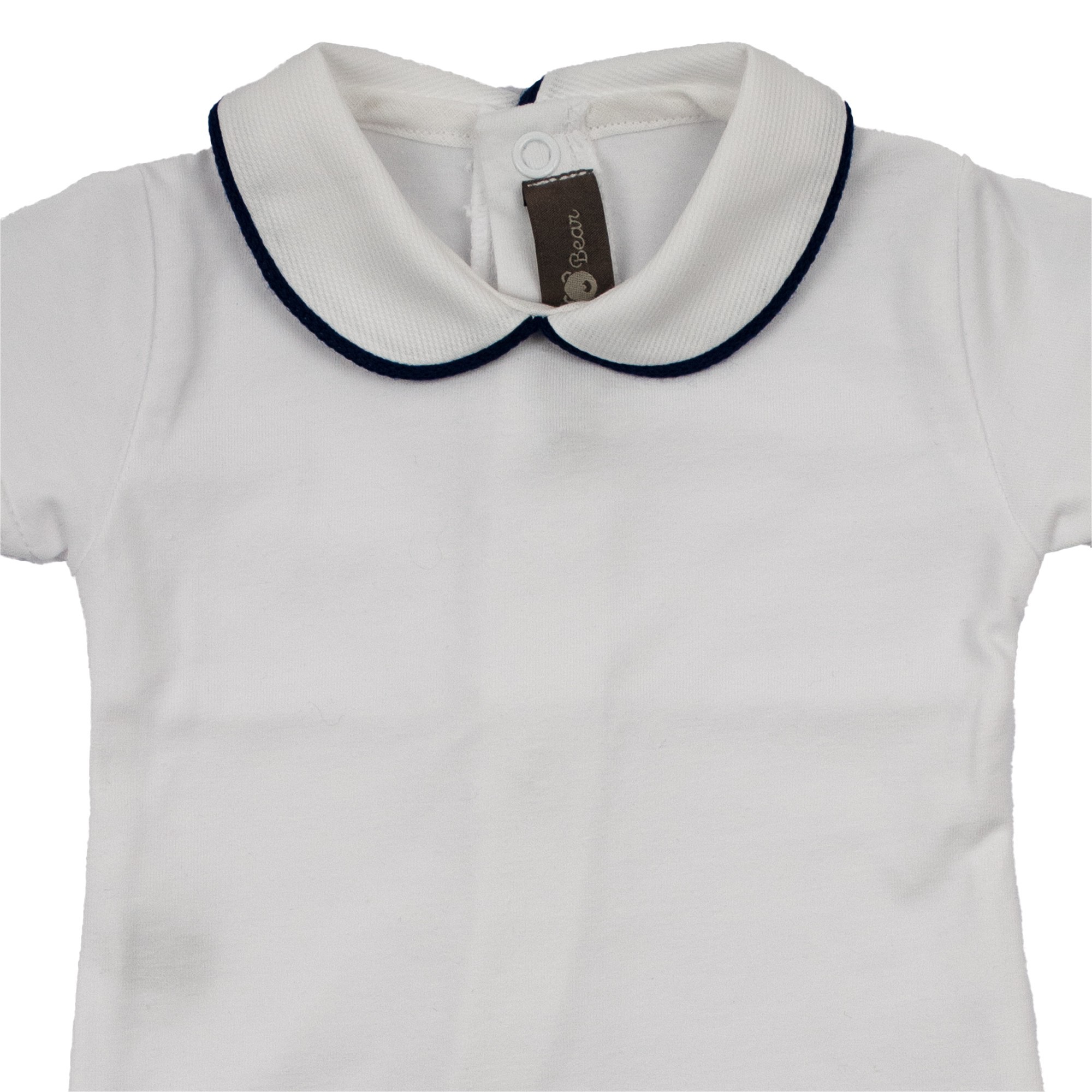 LITTLE BEAR Body cotone manica corta colletto tondo bianco e blu neonato