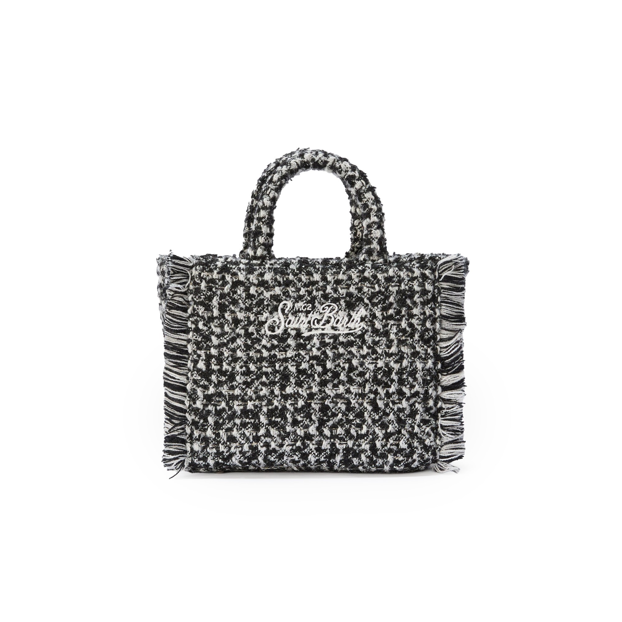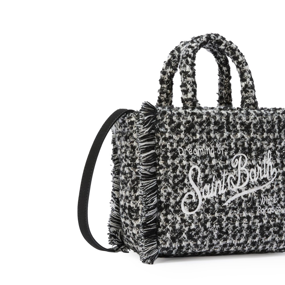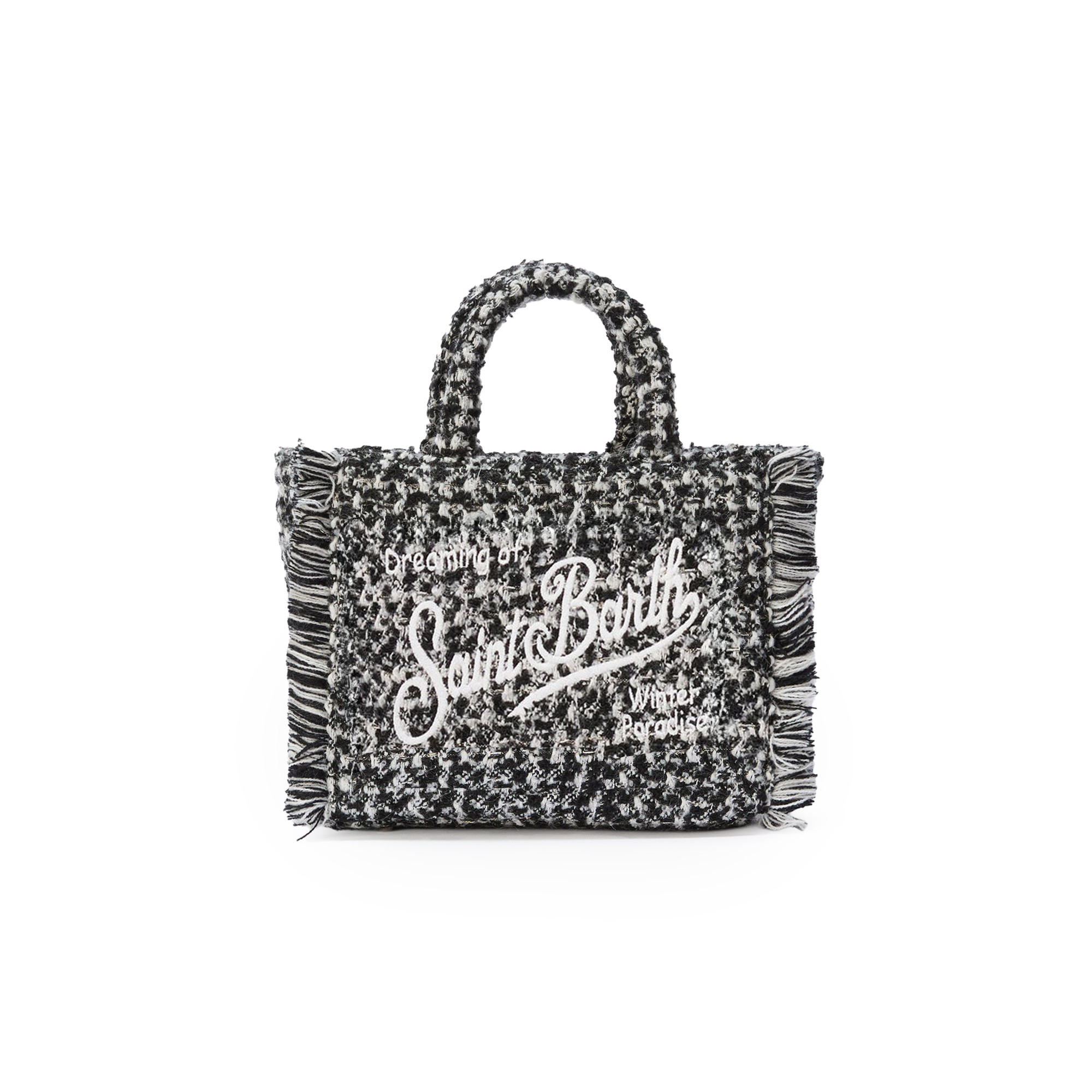 SAINT BARTH Borsa Vanity Mini bianca e nera in tweed bambina
