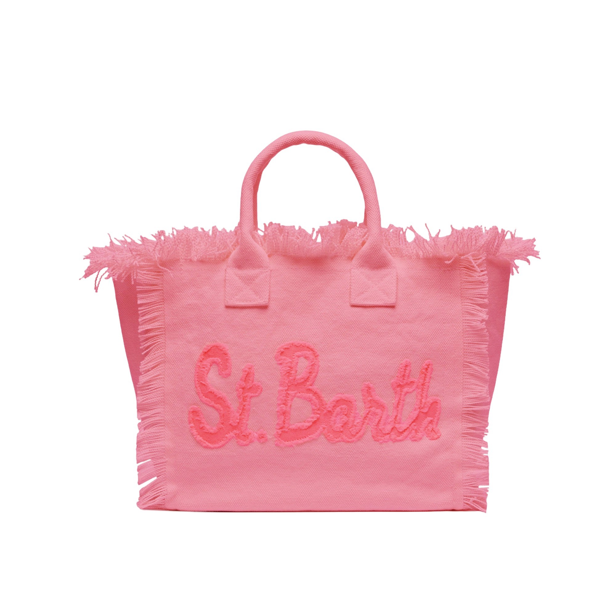logo patch sfrangiato frontale, frange sugli orli, due manici superiori.