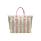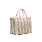 Design a righe beige, realizzata in canvas, tracolla rosa,