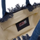 logo bianco frontale, frange sugli orli, due manici superiori.