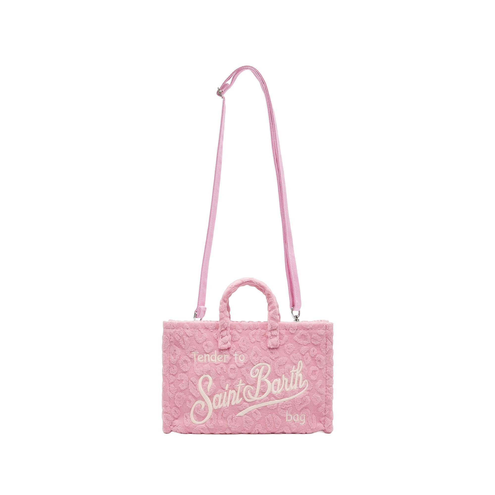 Realizzata in spugna, tracolla rosa staccabile,