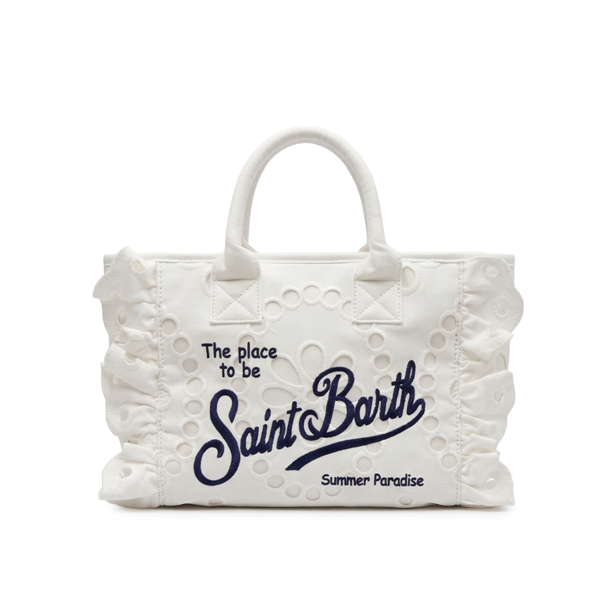 SAINT BARTH Borsa Colette bianca con logo blu bambina