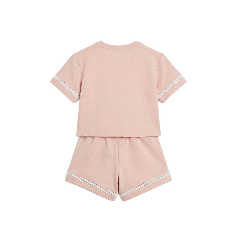 shorts rosa con profili bianchi ricamati, vita elasticizzata. -