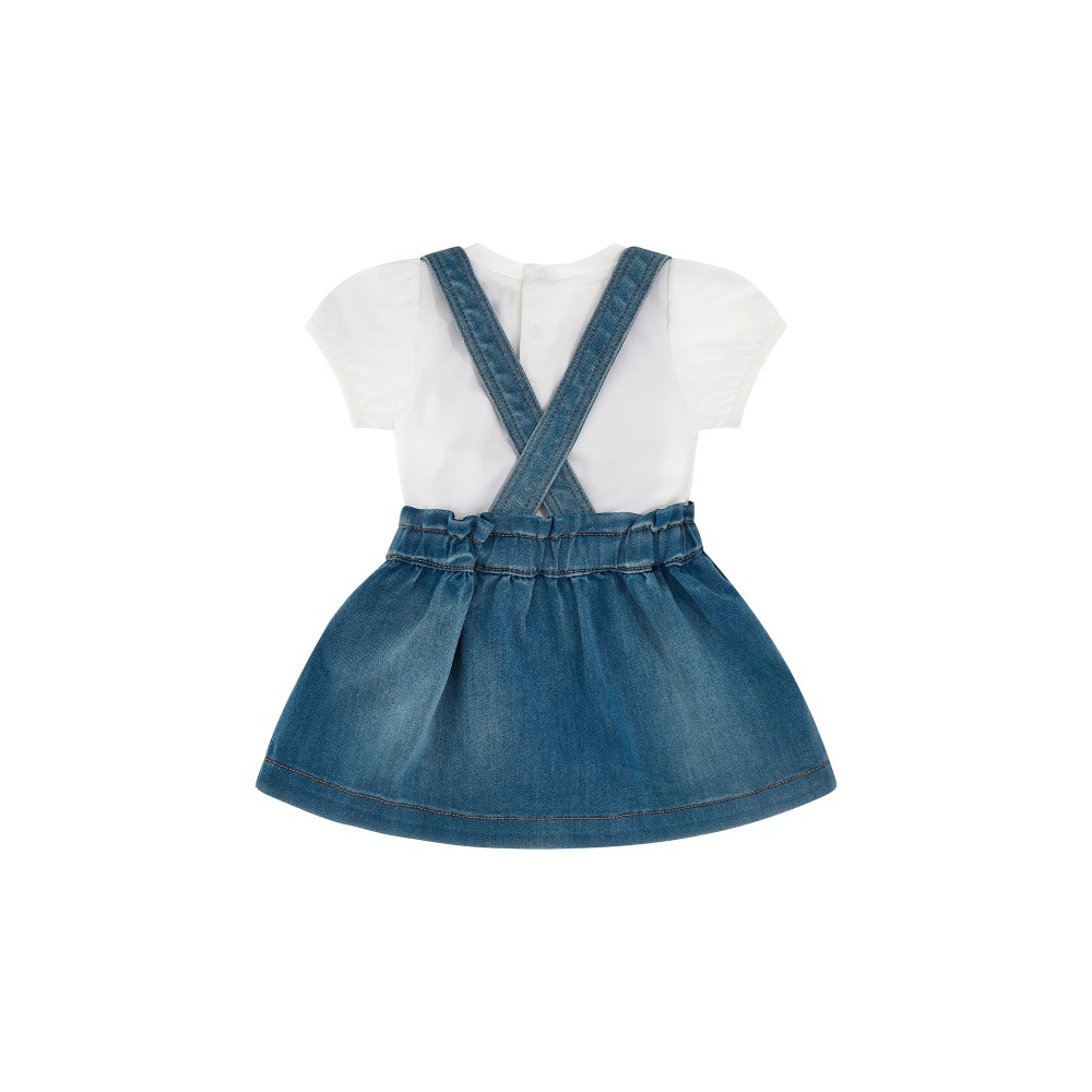bretelle incrociate, vita elasticizzata e gonna svasata. -