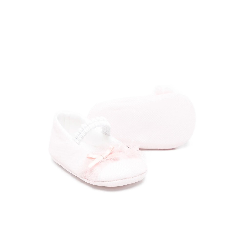 In alcantara salvia, scarpa da culla, fiocchetti frontali,