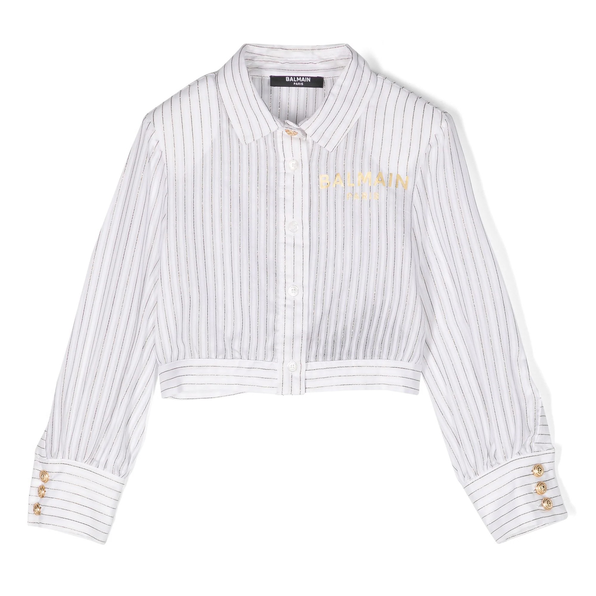 BALMAIN Camicia a righe bianca oro con stampa bambina