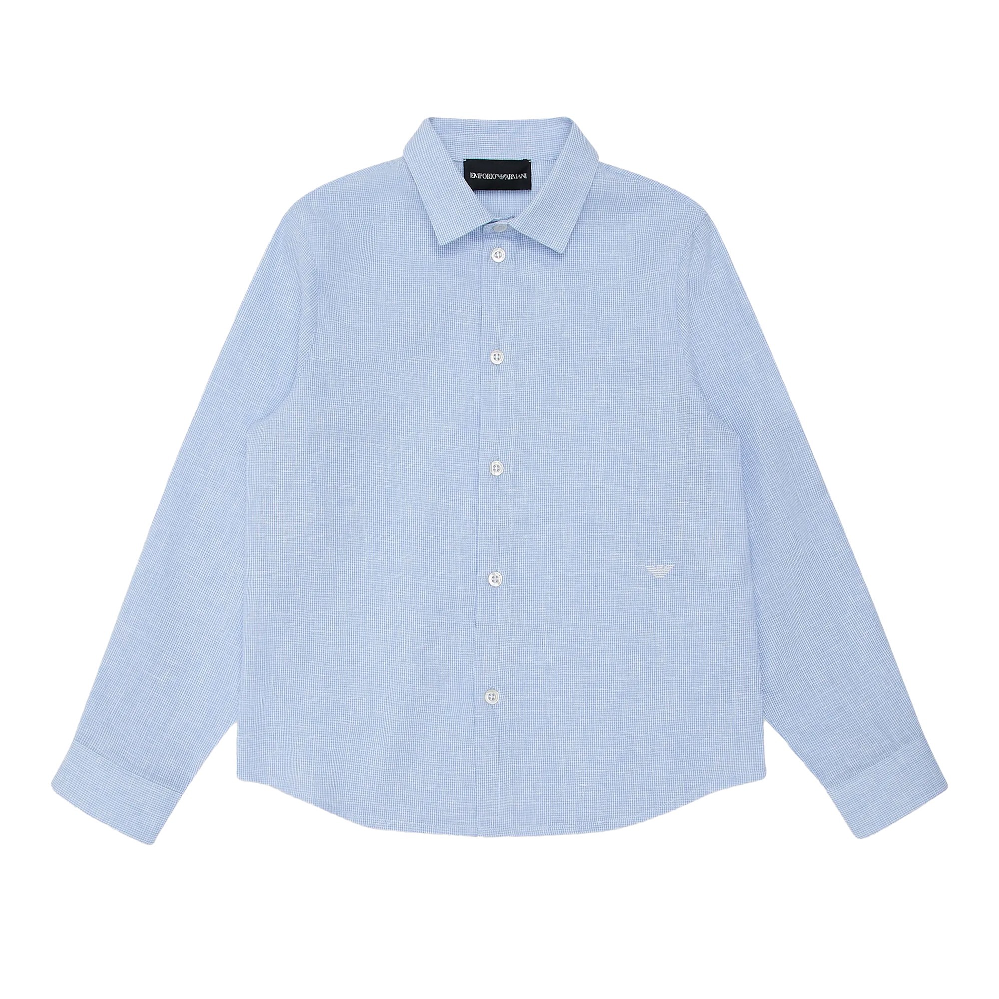 EMPORIO ARMANI Camicia cotone misto lino cielo bambino