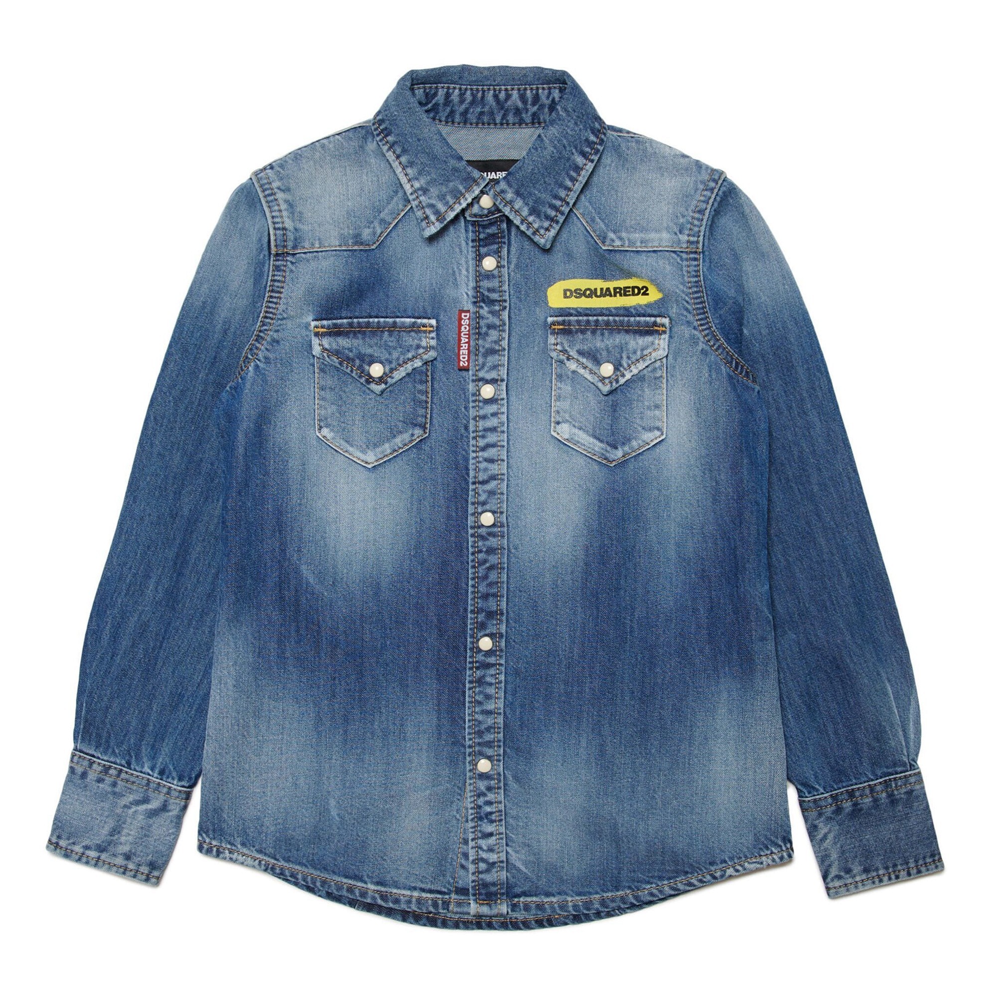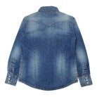 Camicia in denim blu bambino lavaggio medio bottoni in madreperla etichetta frontale