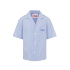 SAINT BARTH Camicia in lino a righe con ricamo colorato bambino