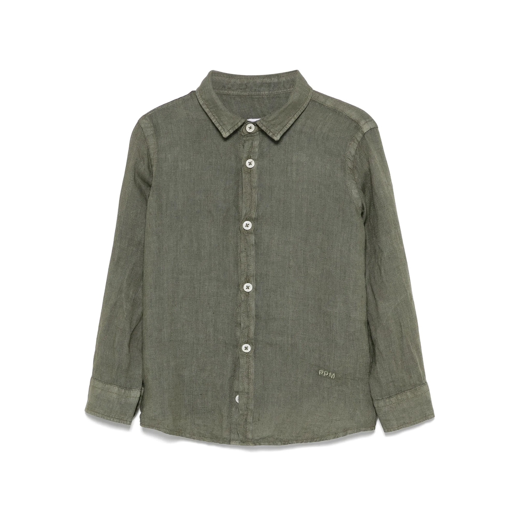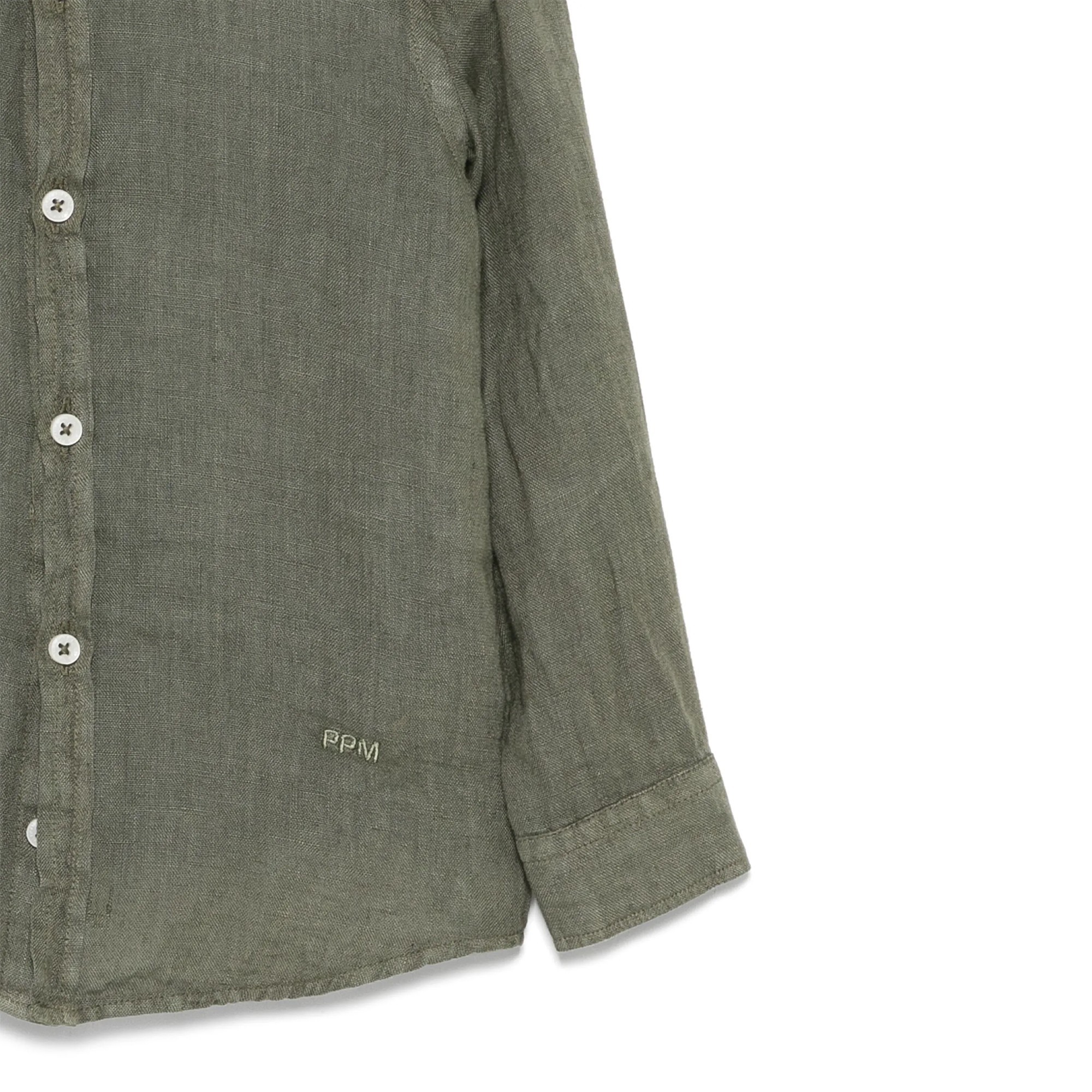 PAOLO PECORA Camicia verde oliva in lino bambino