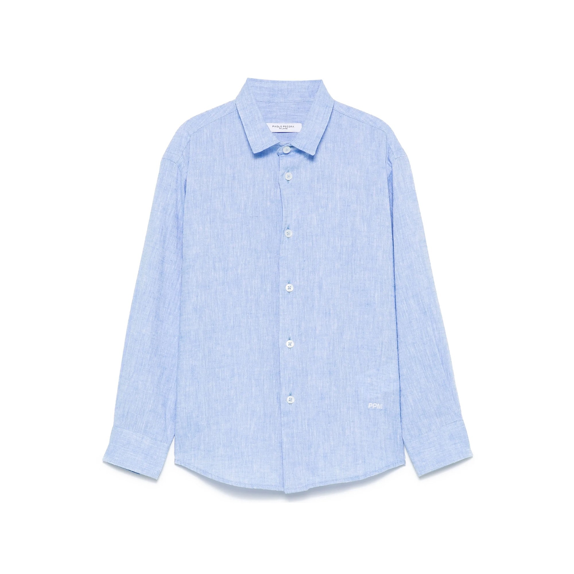PAOLO PECORA Camicia celeste con ricamo logo bambino