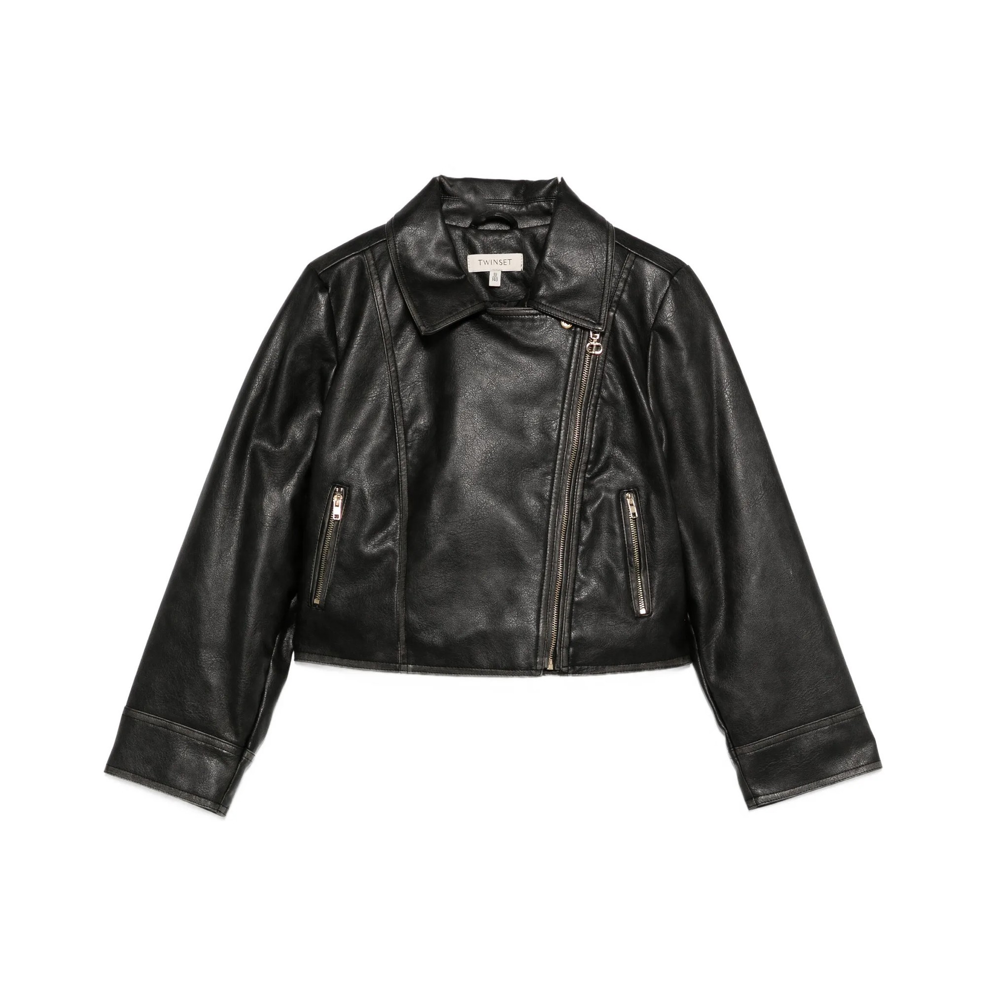 TWIN-SET Chiodo nero imbottito spalmato bambina