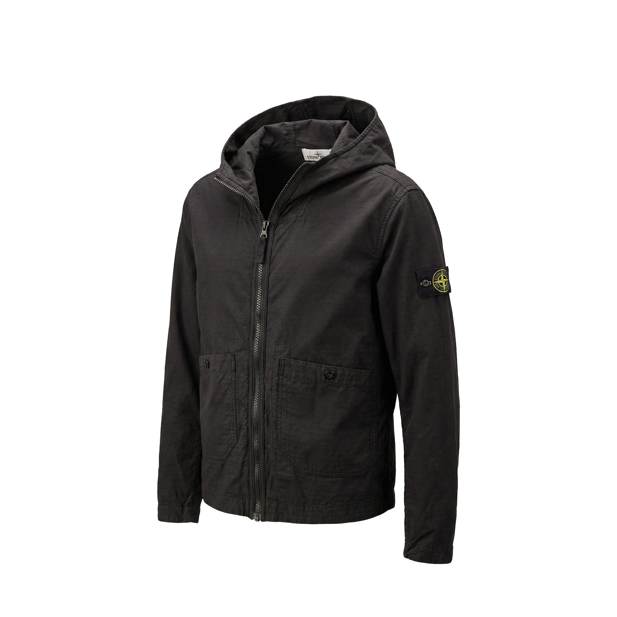 chiusura frontale con zip, patch logo sulla manica.
