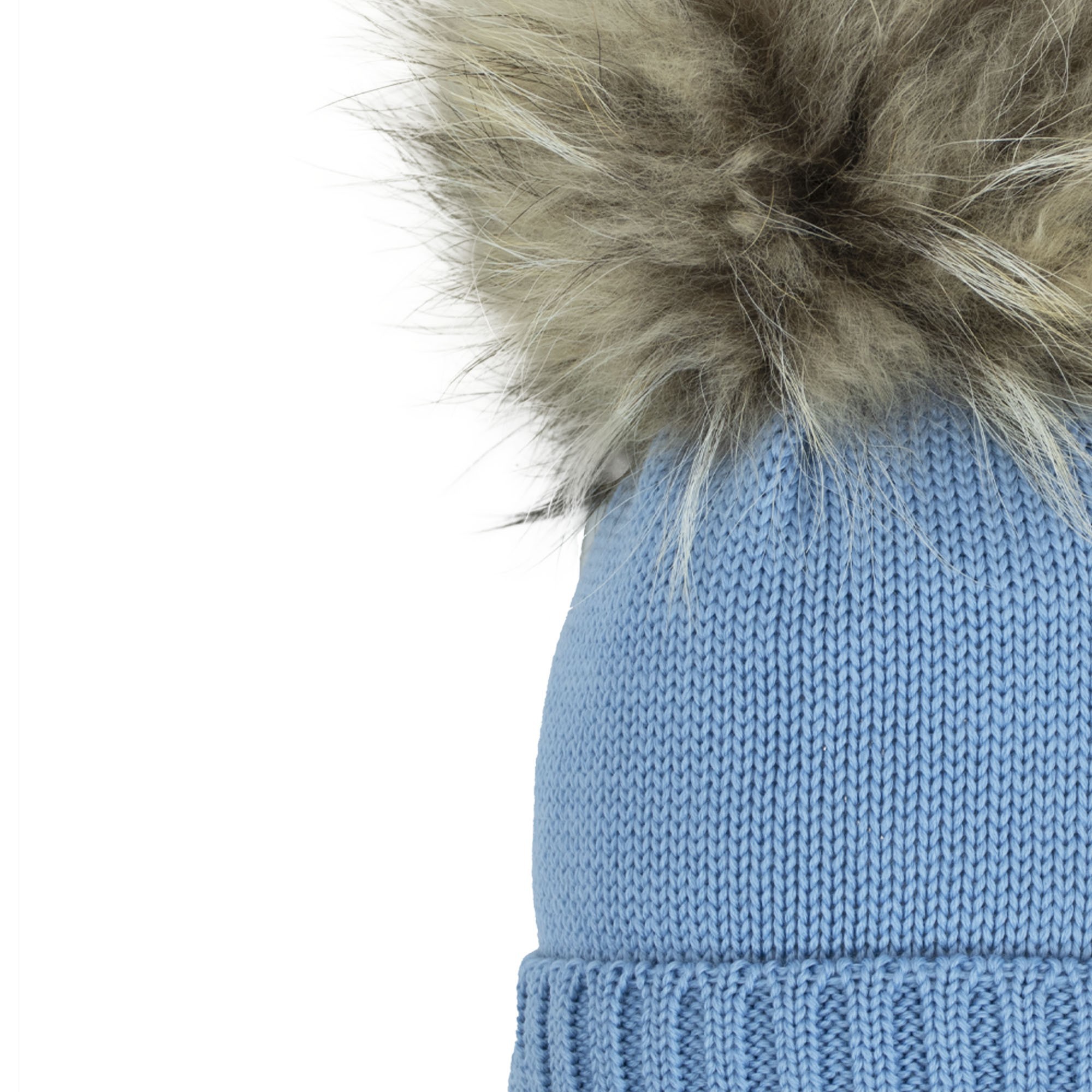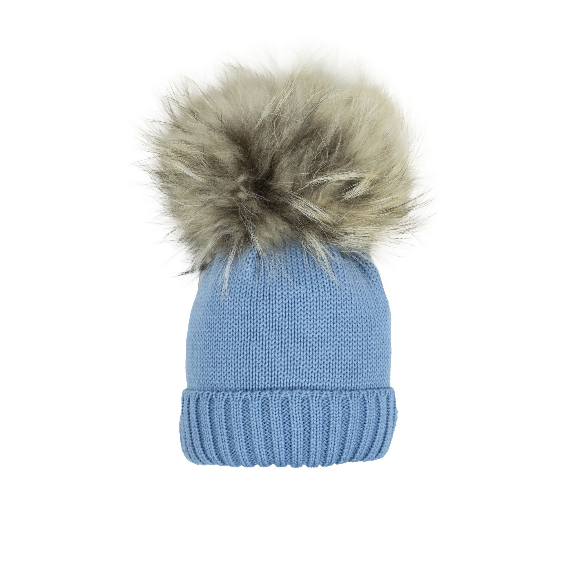 Cappello in maglia rasata filato di lana merinos filati naturali al 100%, testati contro ogni allergia offrono confort, caldo, morbidezza il modello con pon pon naturale murasky 10x10 la maglia ha costine sul bordo del risvolto, è elasticizzata per il massimo confort il ponpon in abbinamento è morbidissimo con sfumature di colore
