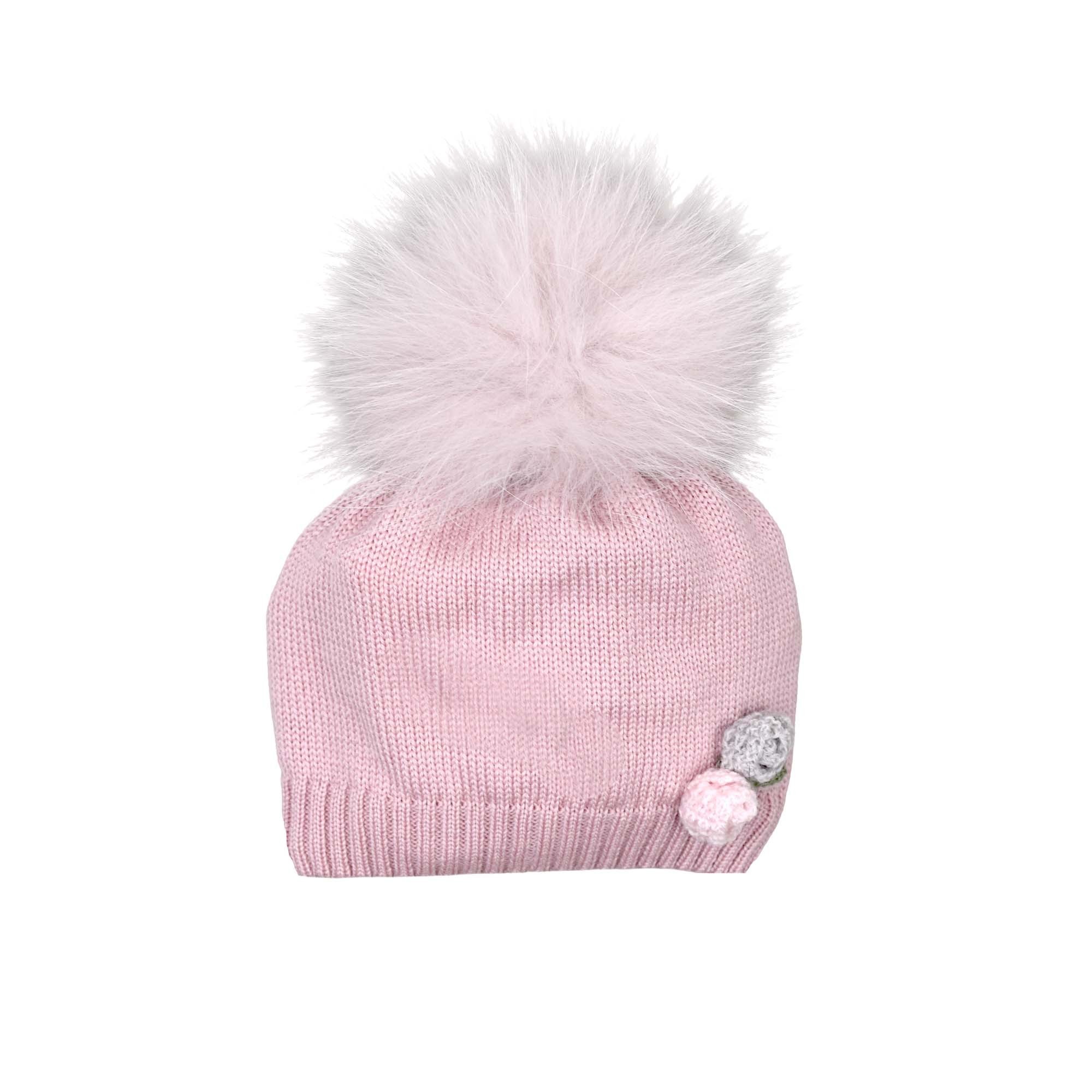 MARLU' Cappellino marsala con fiori e pom pom neonata