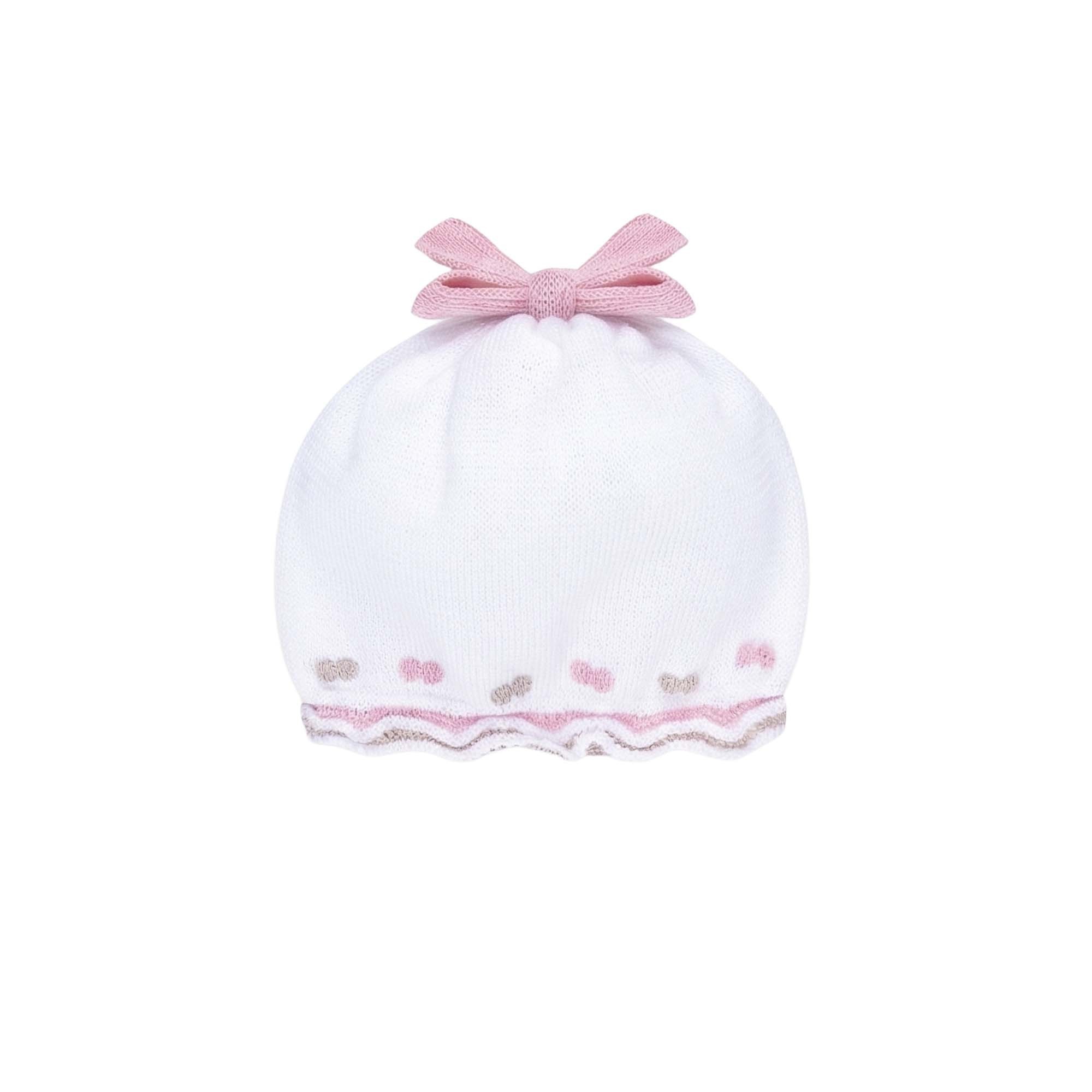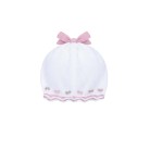 MARLU' Cappellino bianco con ricami rosa neonata