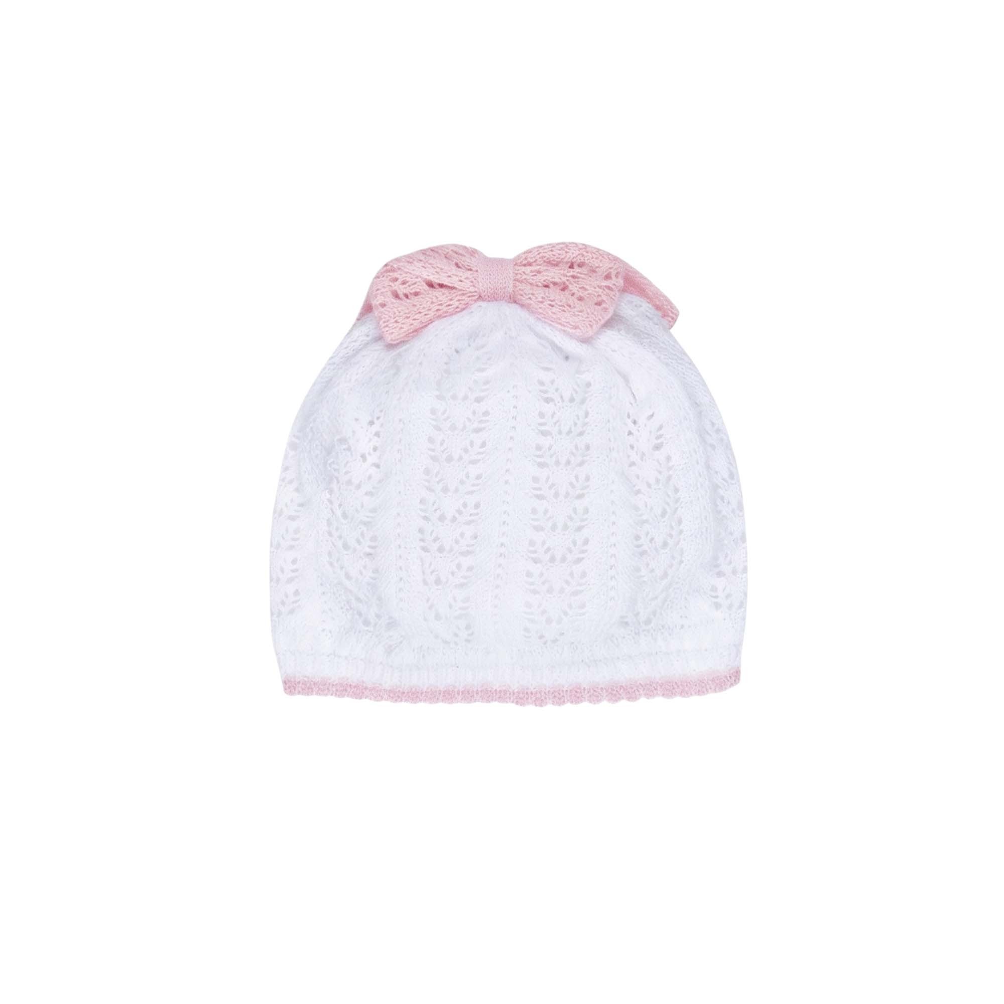 MARLU' Cappellino bianco con fiocco rosa neonata