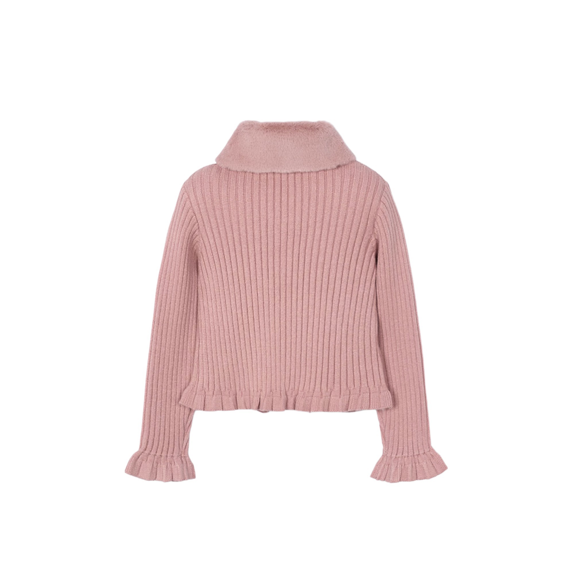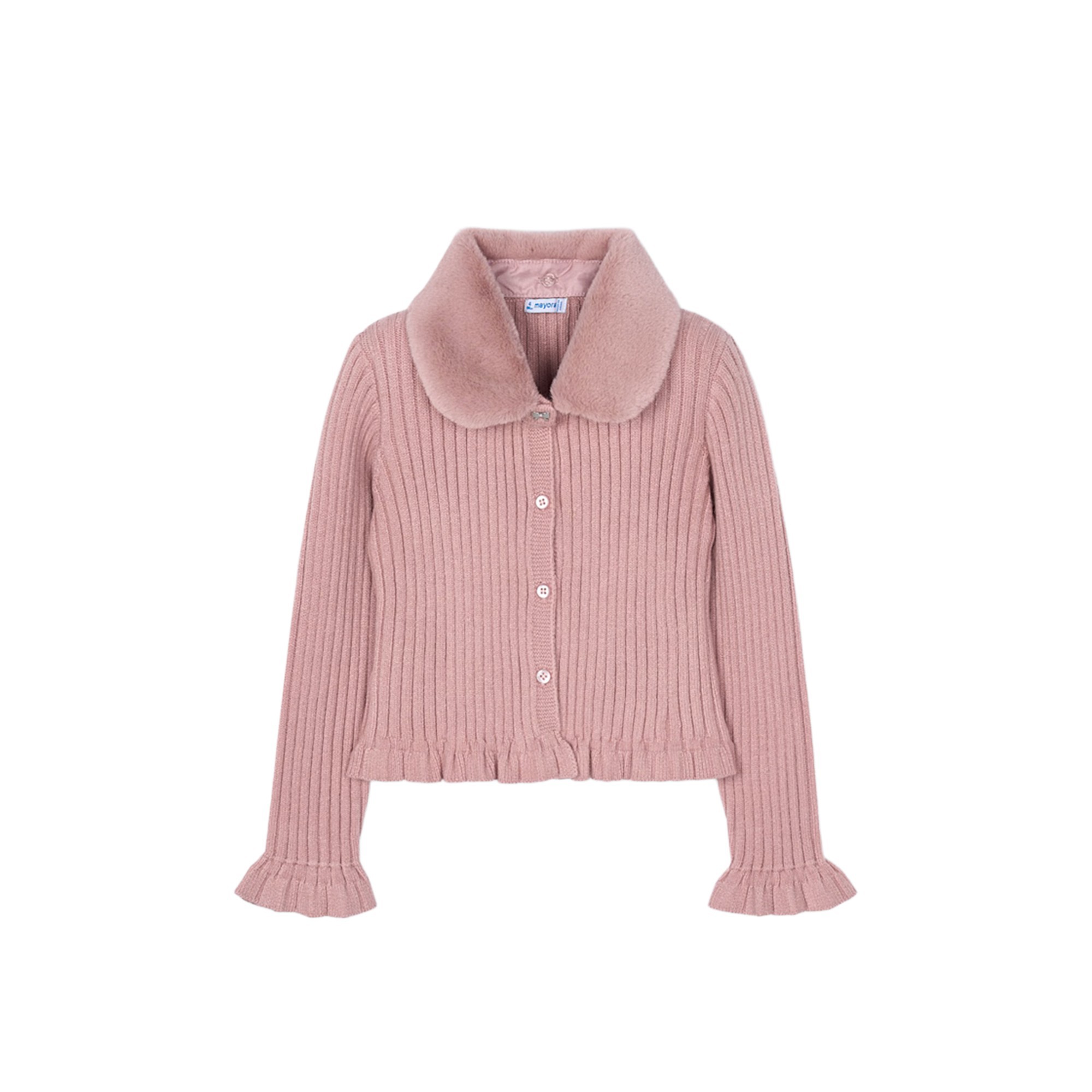 MAYORAL Cardigan rosa colletto pellicciotto bambina