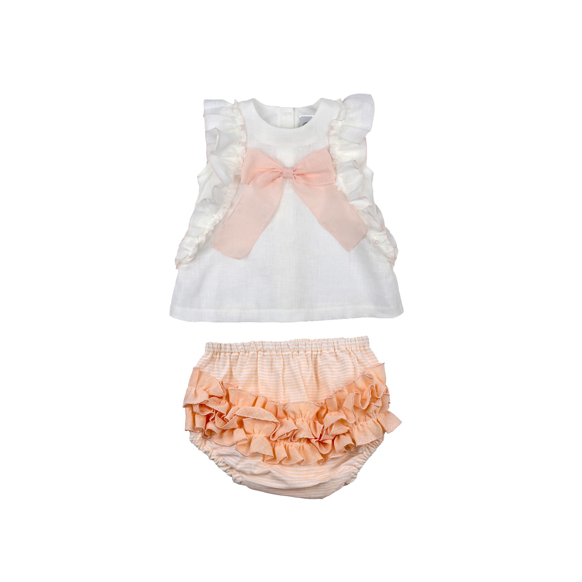 MARLU' Completo due pezzi bianco e albicocca neonata