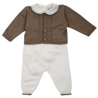 MARLU' Completo salopette 3 pezzi cotone natutale cacao neonato