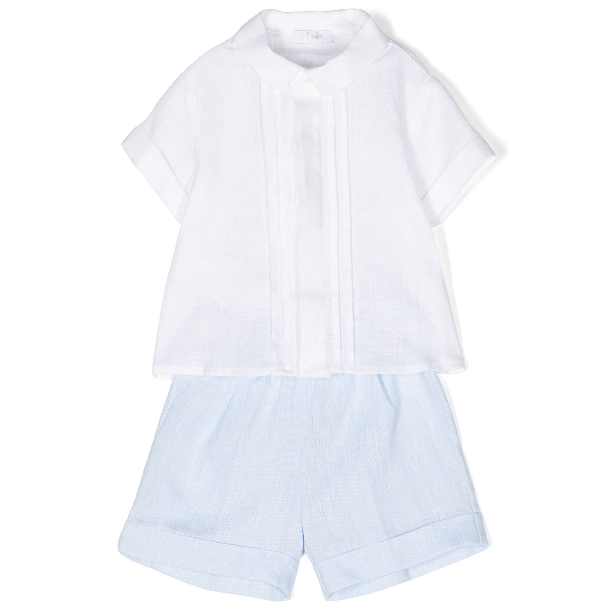 IL GUFO Completo due pezzi 100% lino bianco salvia neonato