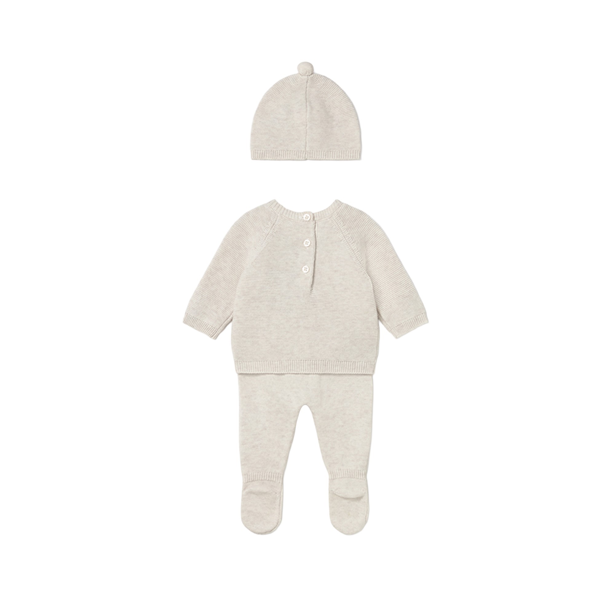 MAYORAL NEWBORN Completo 3 pezzi sabbia tricot neonati