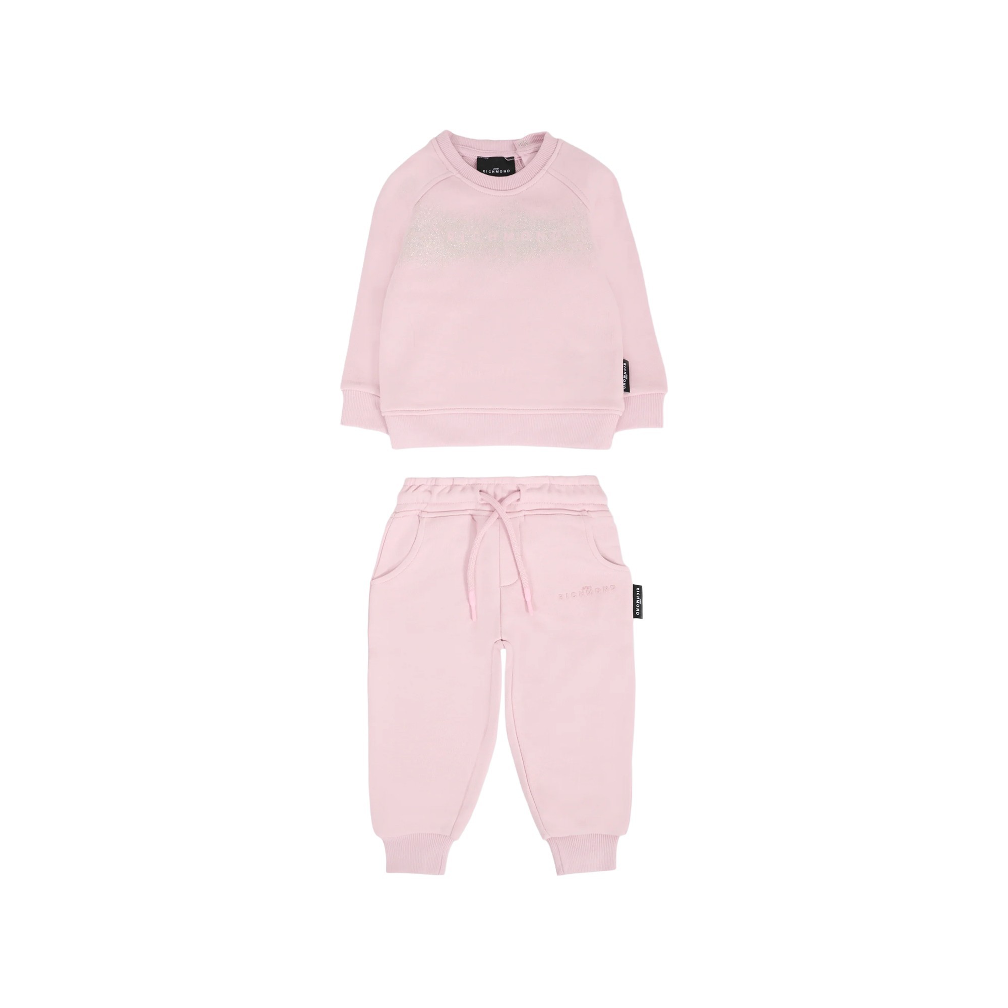 JOHN RICHMOND Tuta rosa girocollo con logo strass neonata