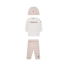 Completo beige composto da t-shirt a maniche lunghe, pantalone e cappellino in cotone.