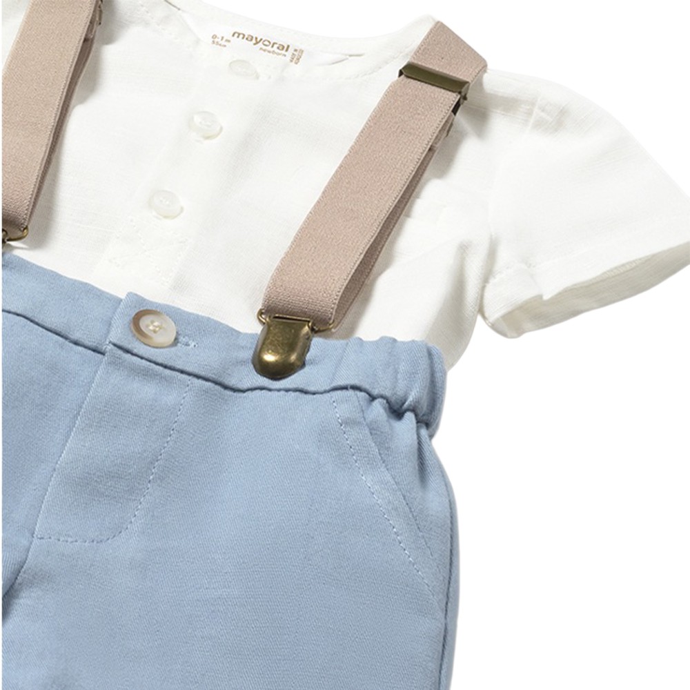 MAYORAL NEWBORN Completo celeste con bretelle neonato