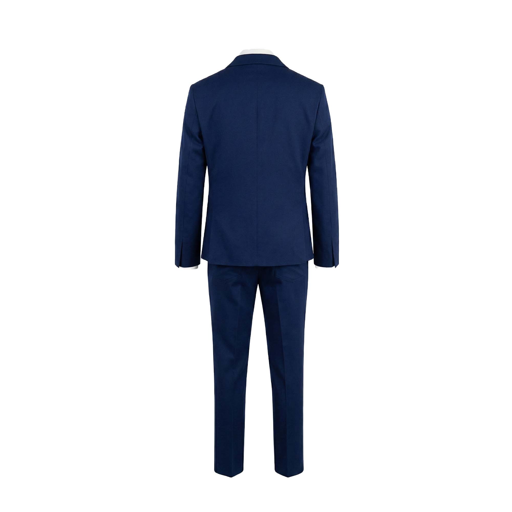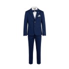 Giacca, pantalone e papillon blu navy a righe,