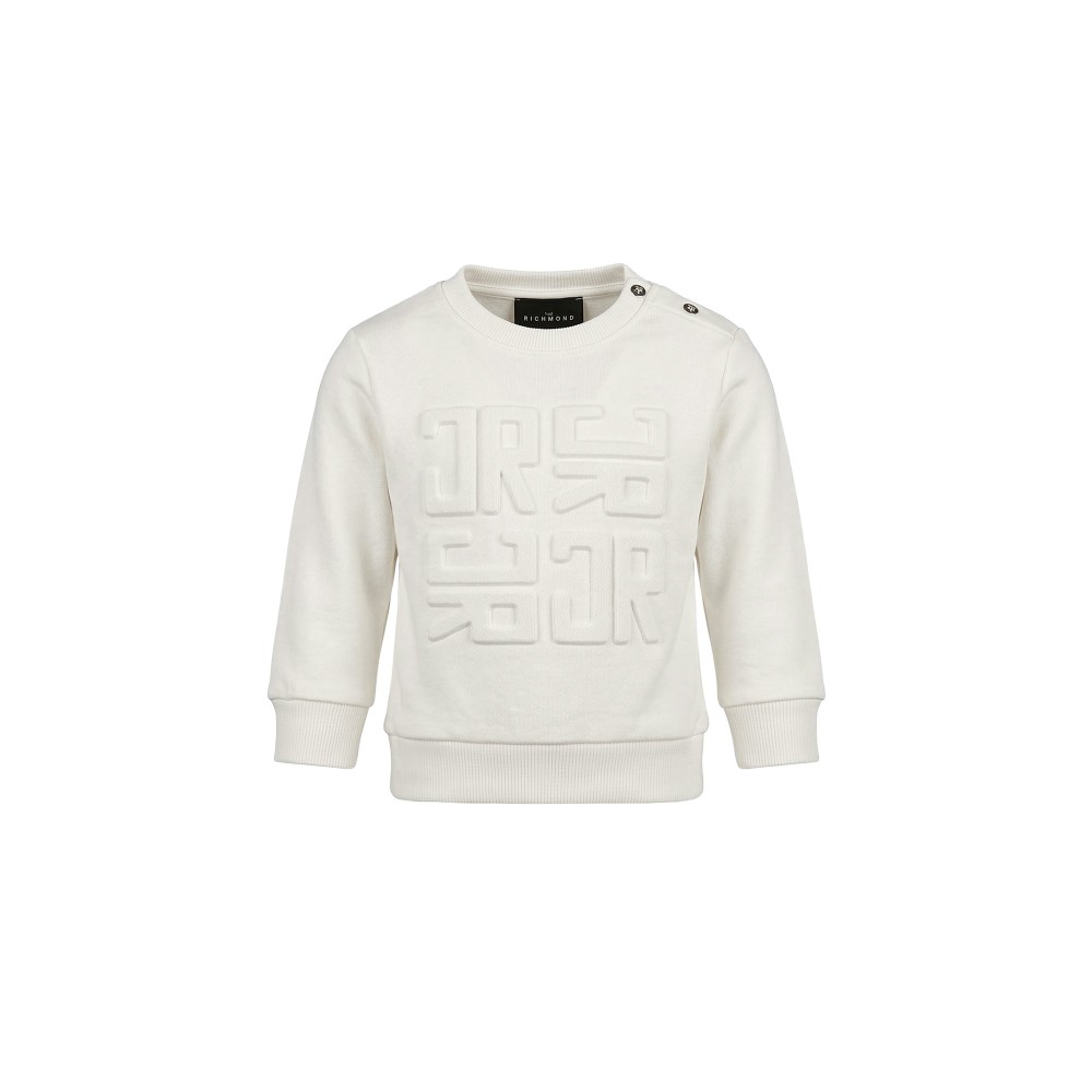 Felpa bianca con logo goffrato sul petto,