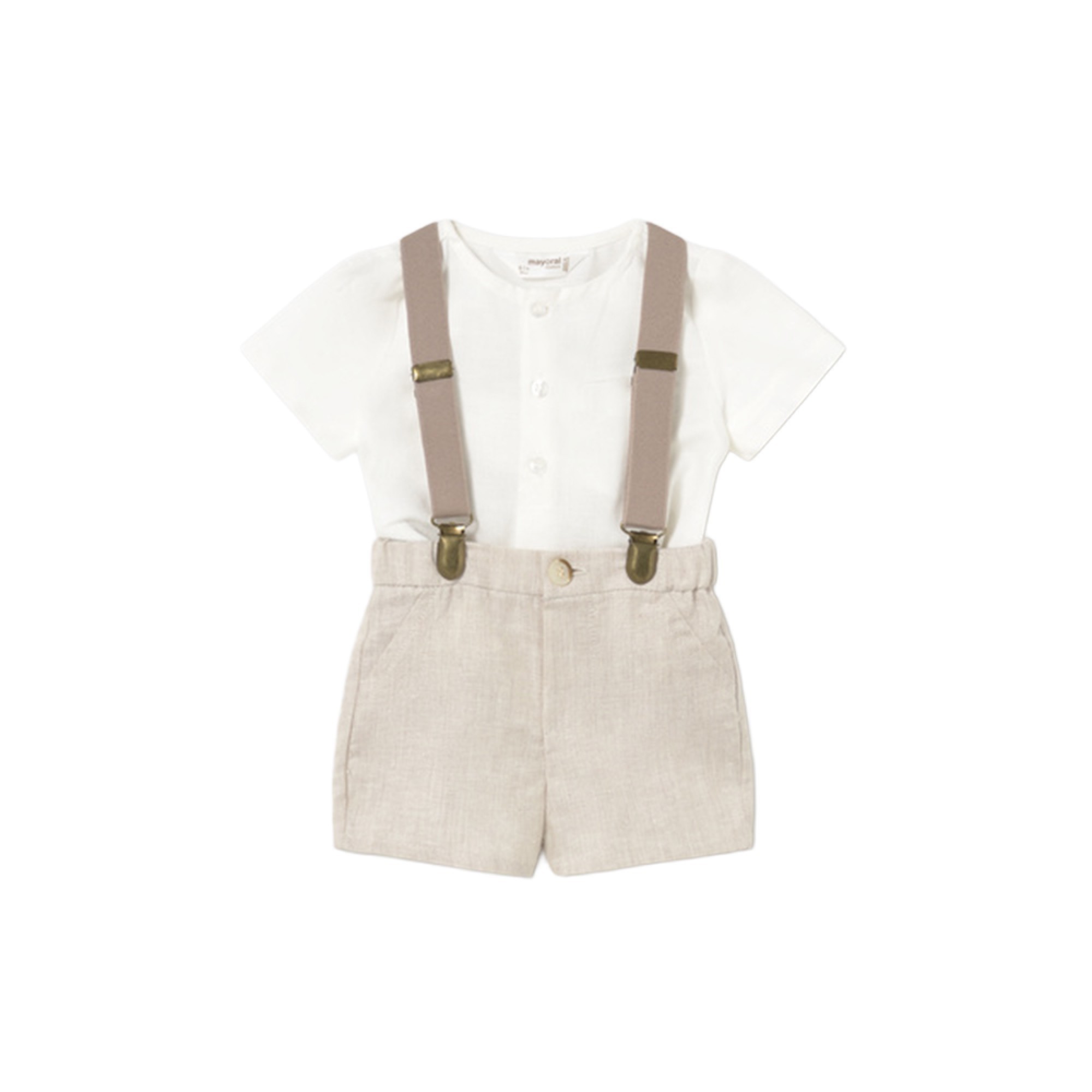 MAYORAL NEWBORN Completo beige con bretelle neonato