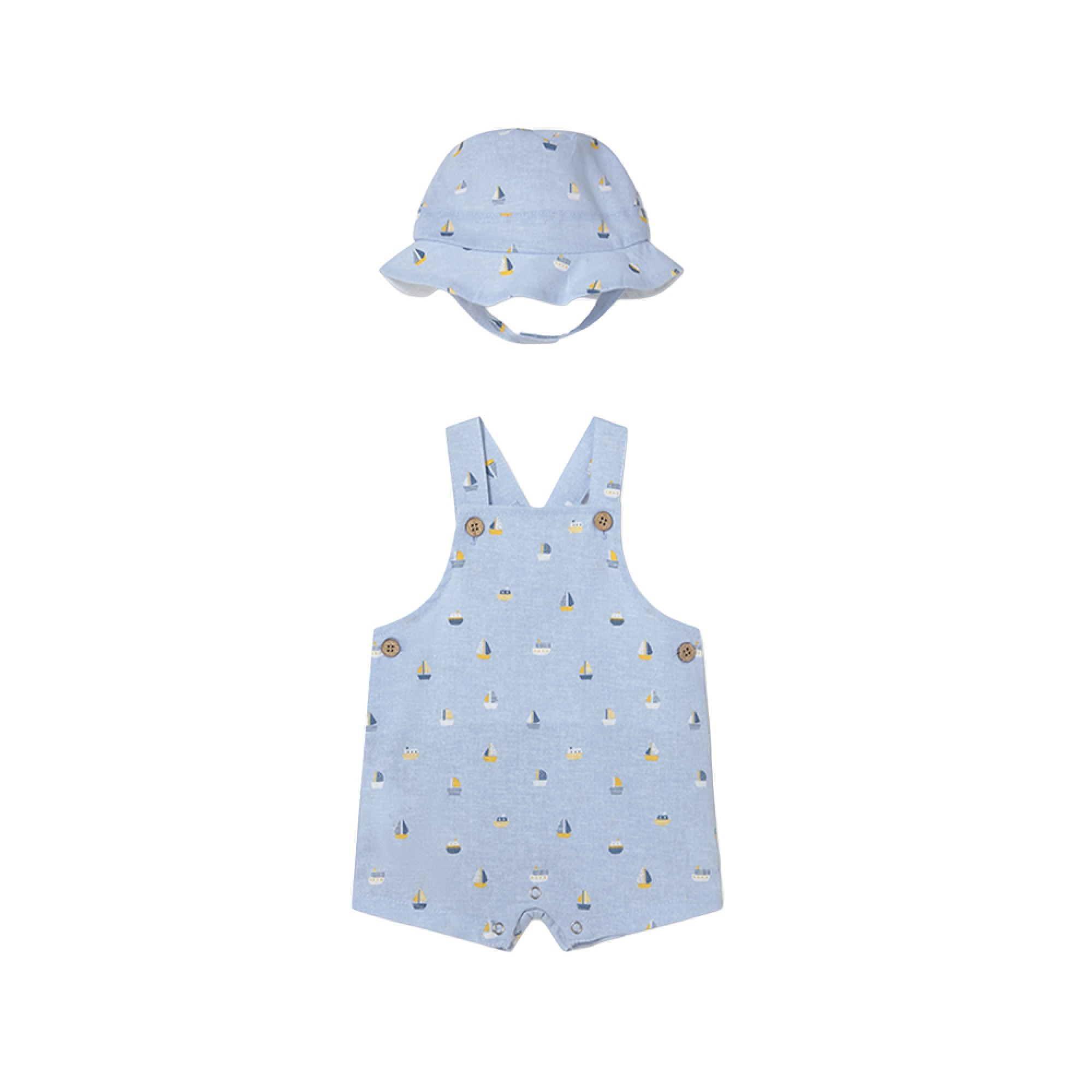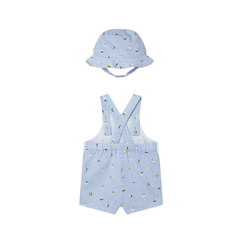 MAYORAL NEWBORN Completo celeste salopette e cappello neonato