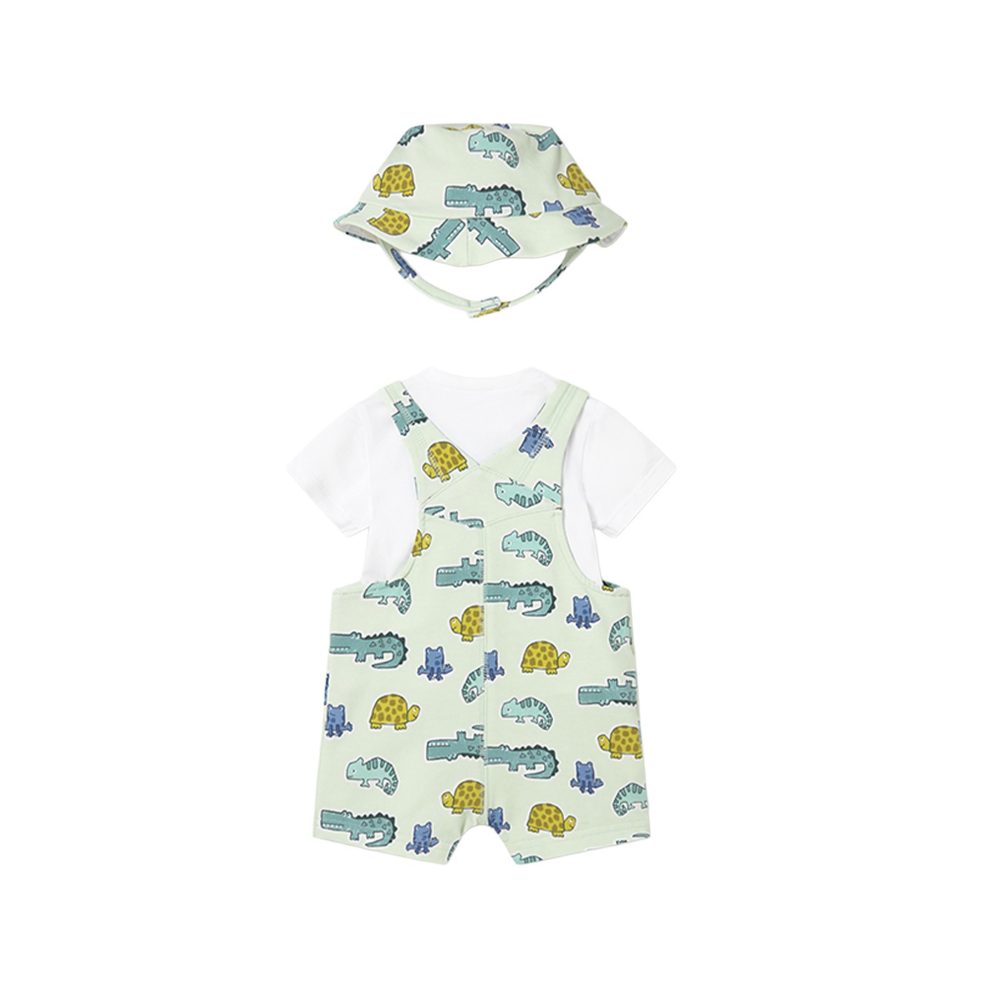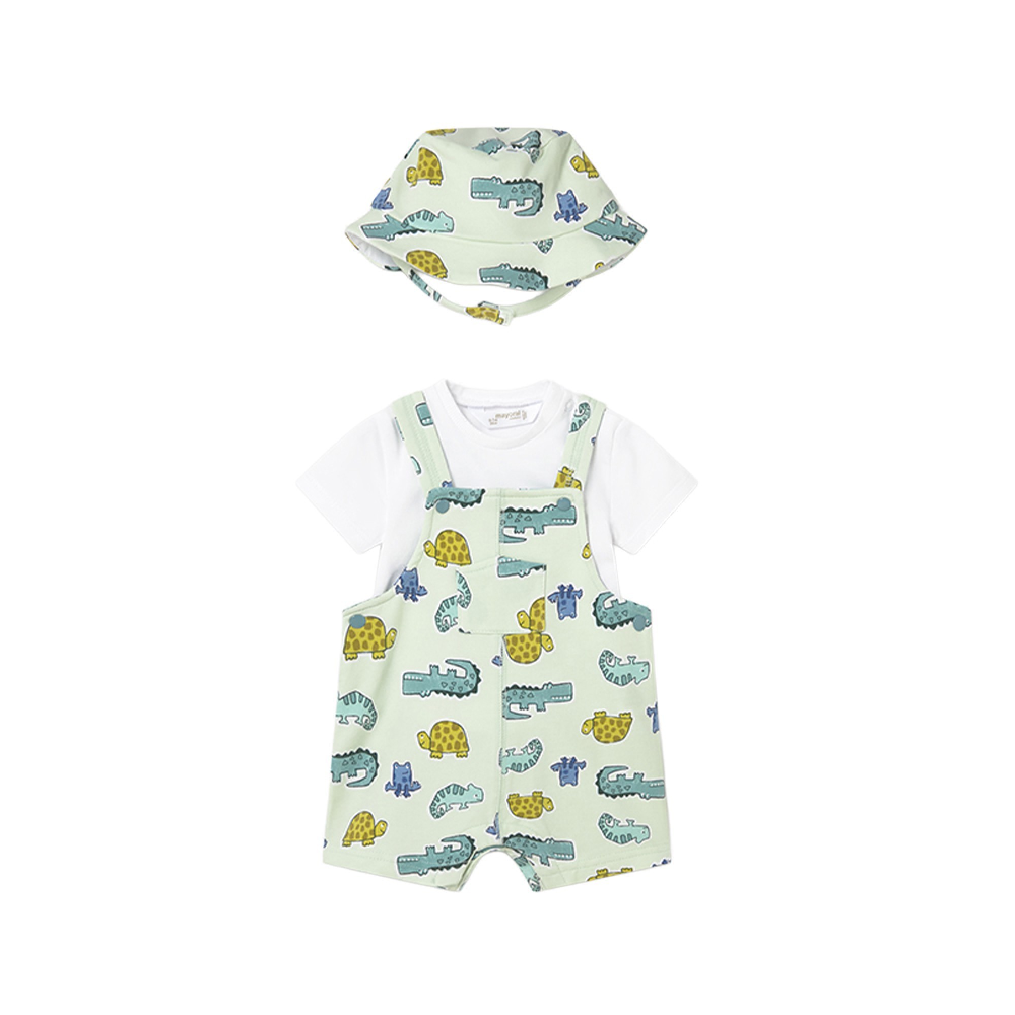 MAYORAL NEWBORN Completo verde salopette e cappello neonato