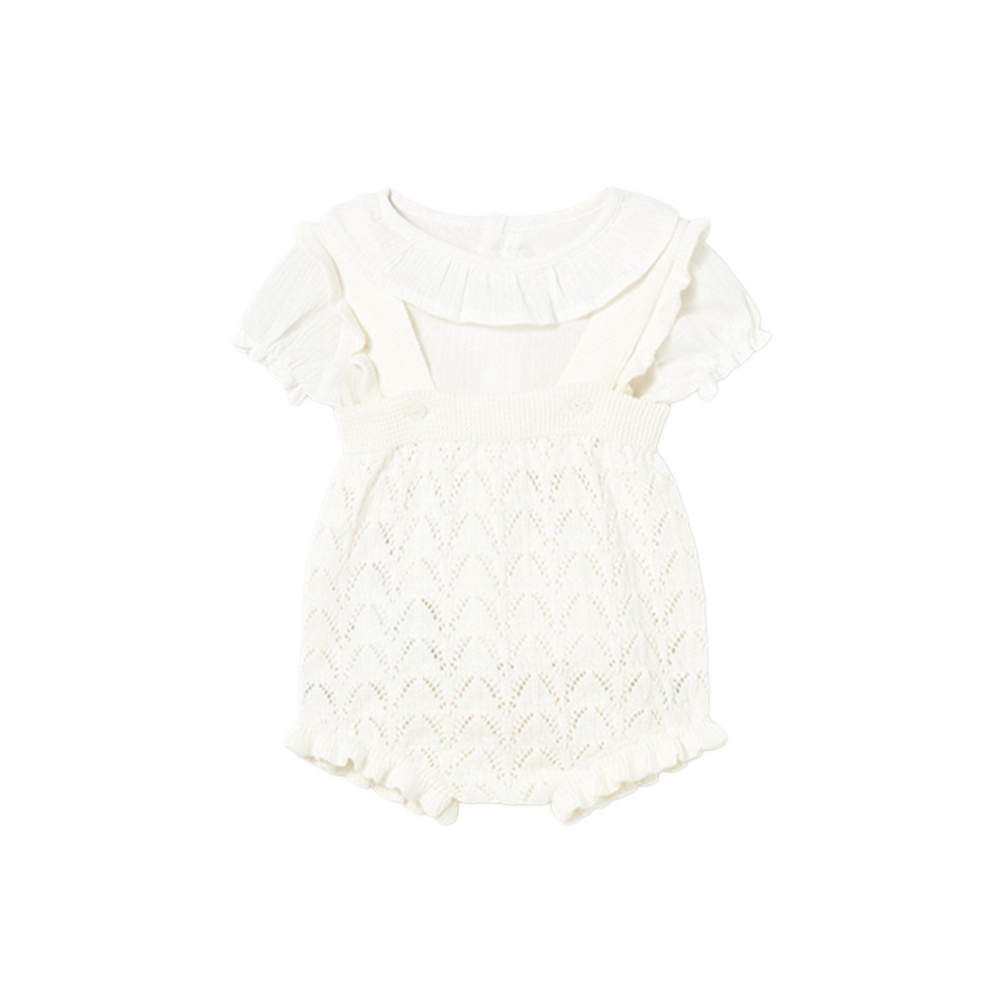 MAYORAL NEWBORN Completo panna tricot con salopette neonata
