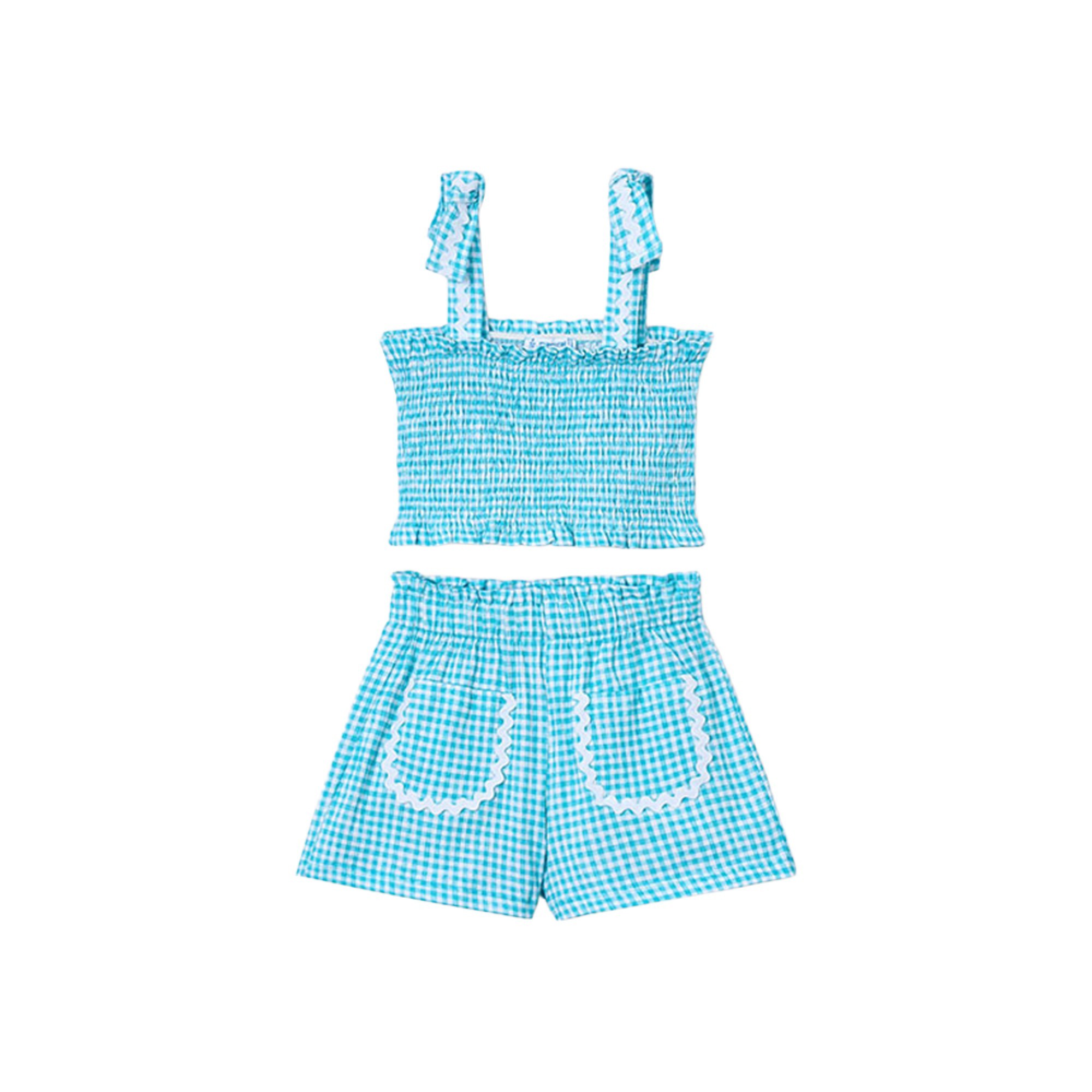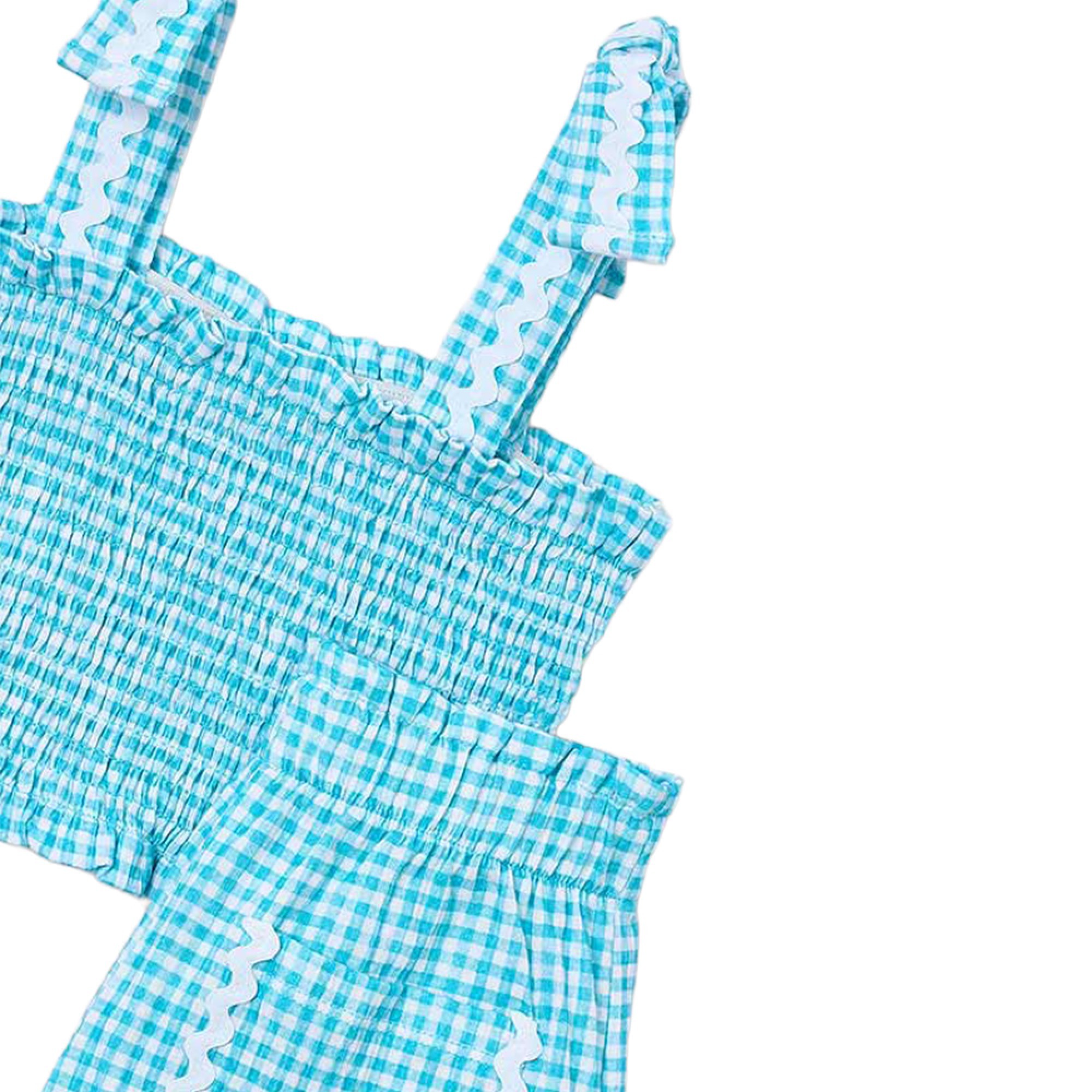 con bretelle a fiocco ricamate, shorts con vita elasticizzata,