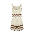 top panna a bretelle, dettagli marroni, orlo sfrangiato,