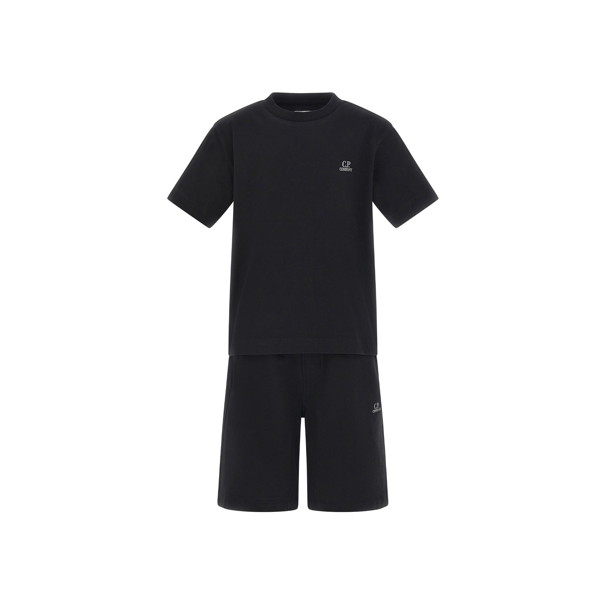 C.P. COMPANY T-shirt e shorts neri con logo bambino