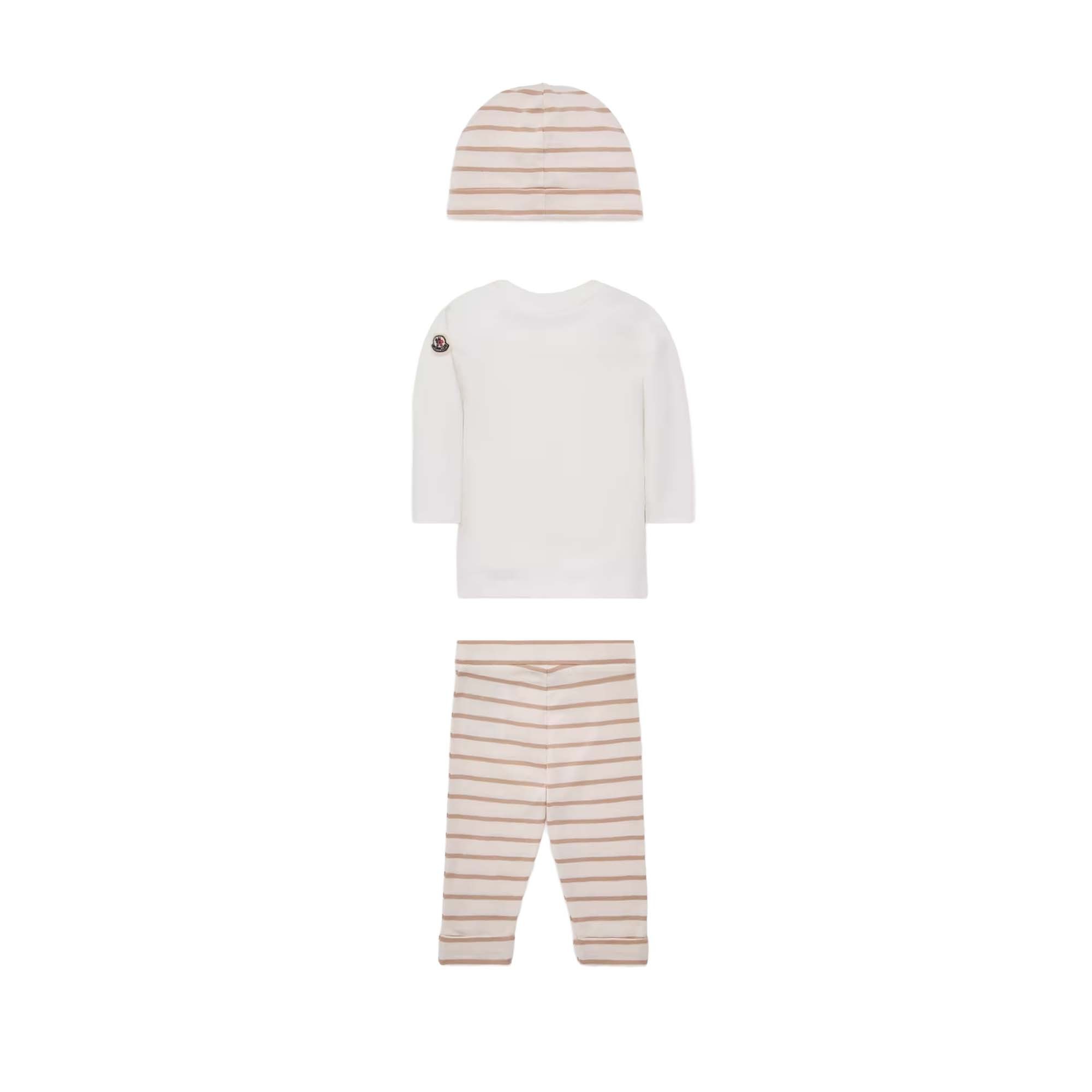 MONCLER Completo 3 pezzi beige a righe neonati