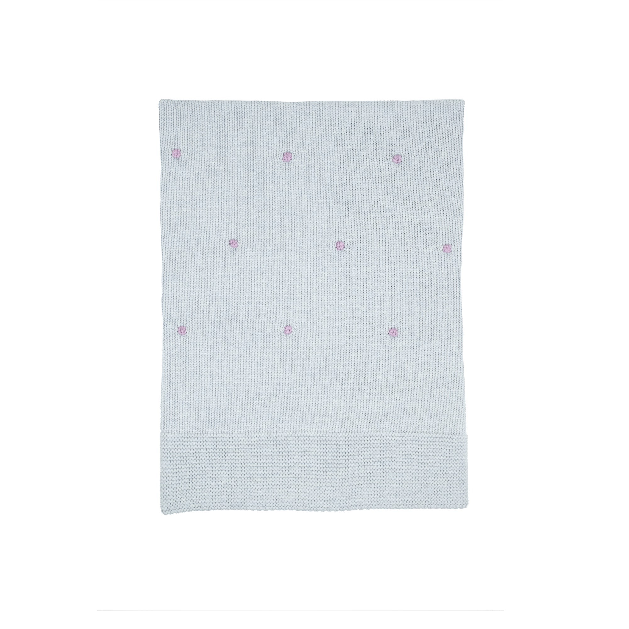 Coperta per carrozzina in lana 100% merino extrafine lavorazione artigianale in italia finiture della maglia con rosa su base grigia