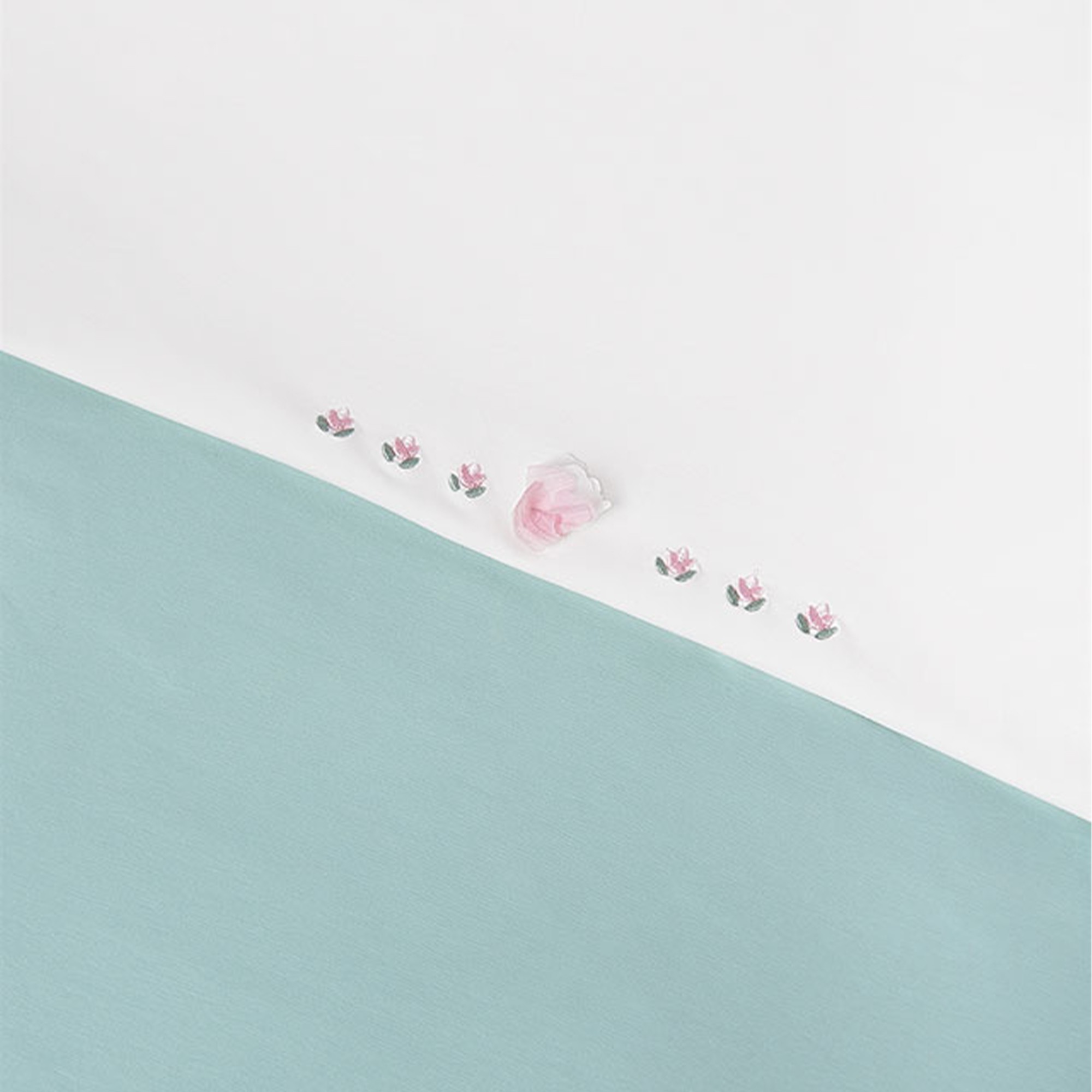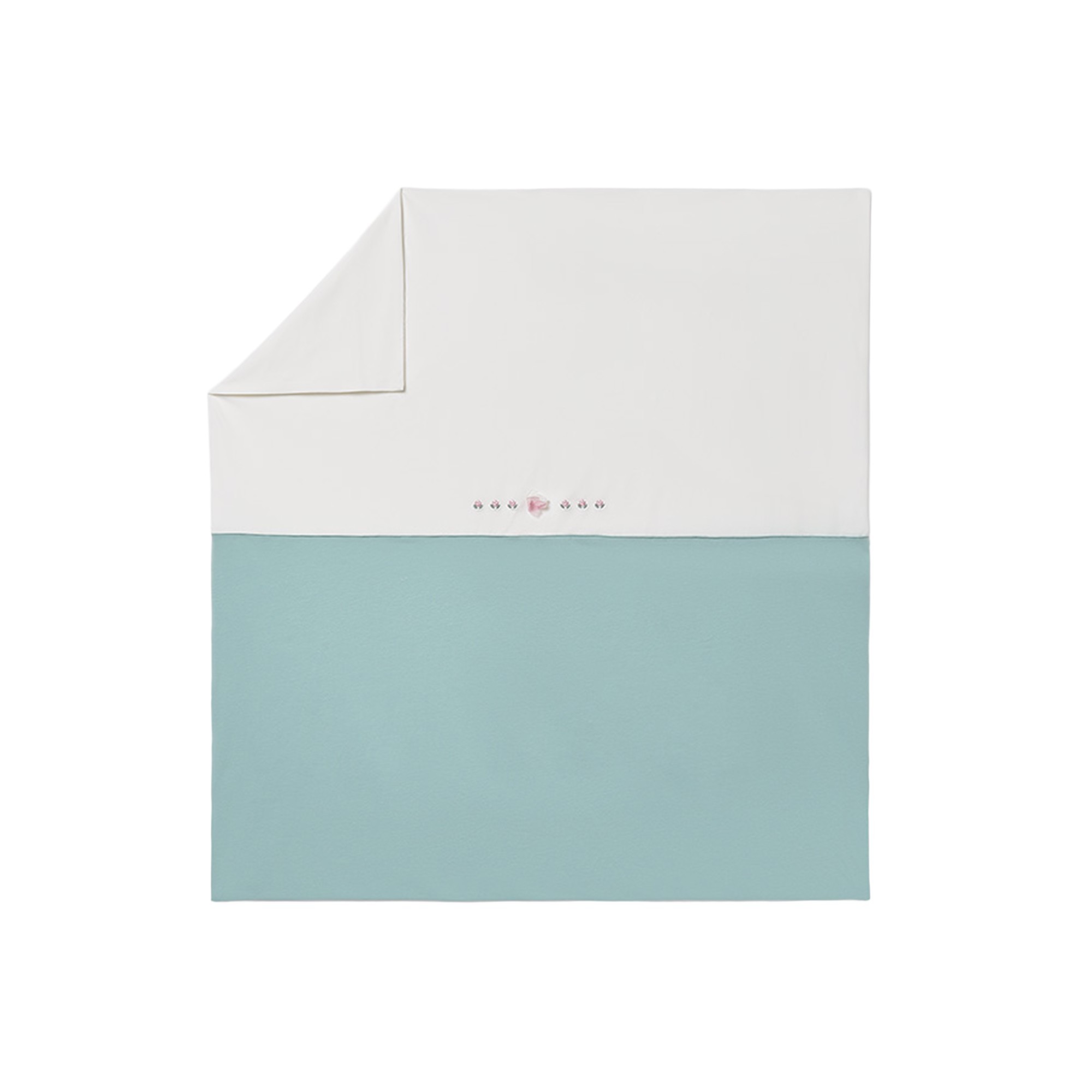 Copertina bianca e verde acqua con fiorellini ricamati