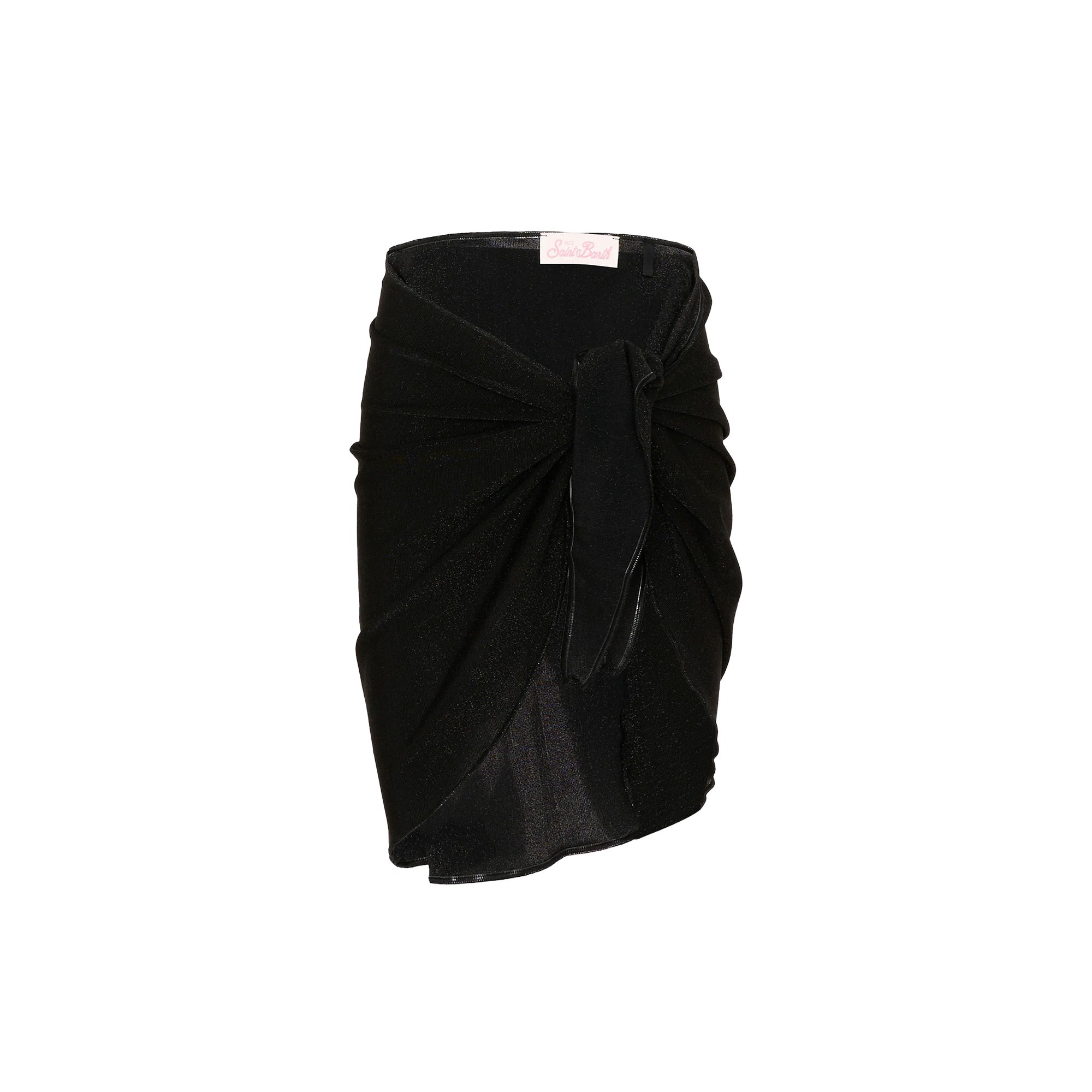 Caratterizzato da una linea a pareo con nodo che crea un elegante drappeggio asimmetrico, design lurex.