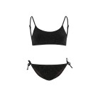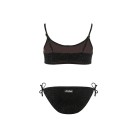Bikini classico da bambina con top a bralette, chiusura posteriore, spalline sottili regolabili, slip con laccetti laterali.