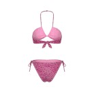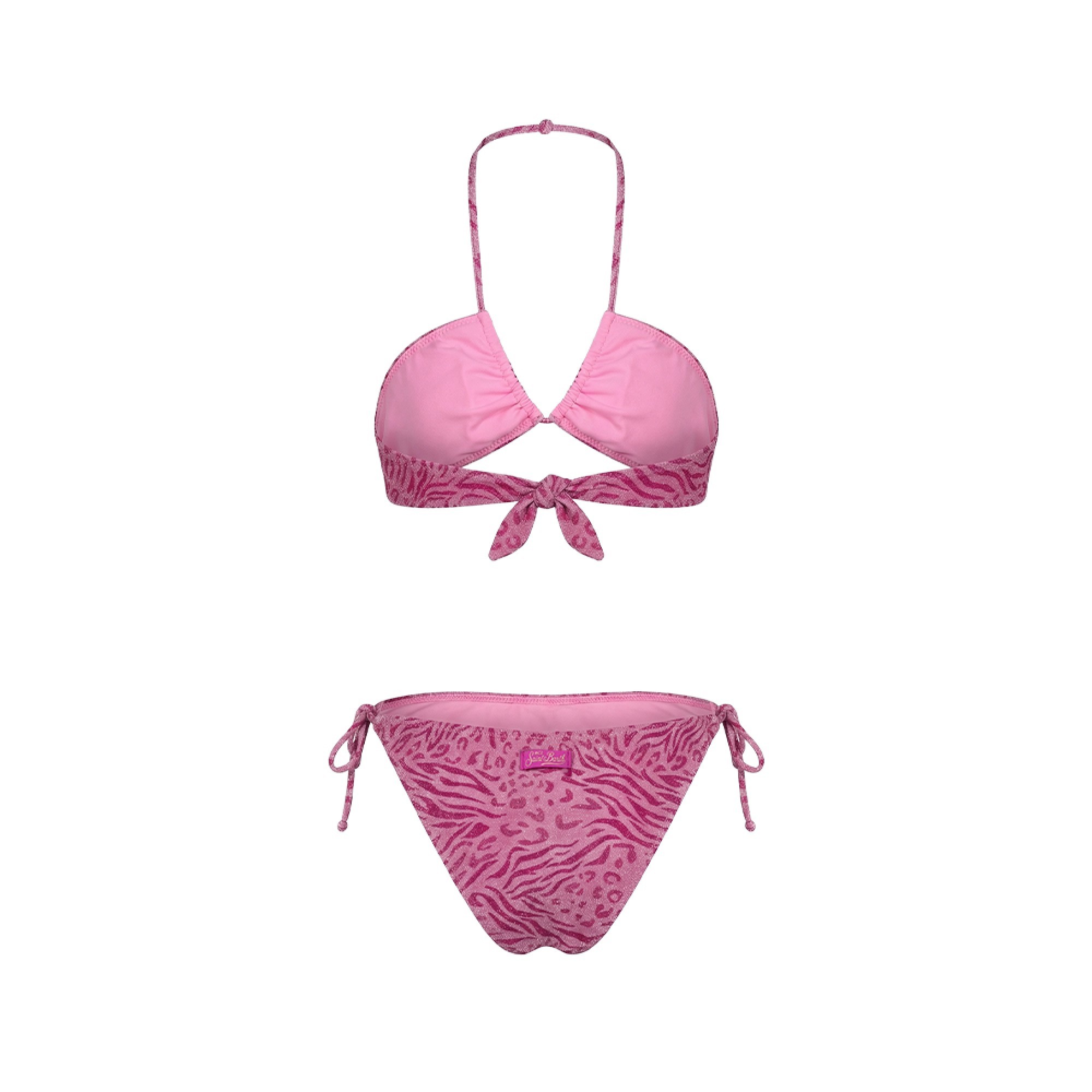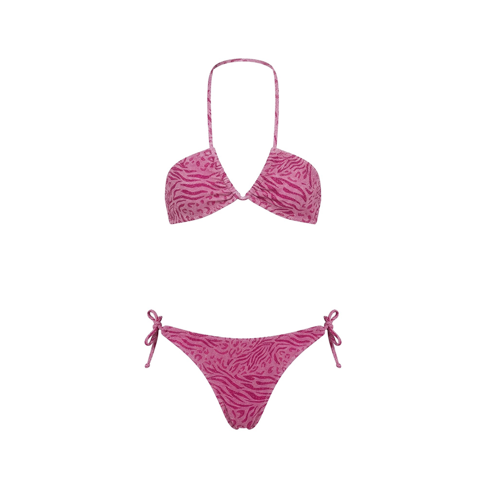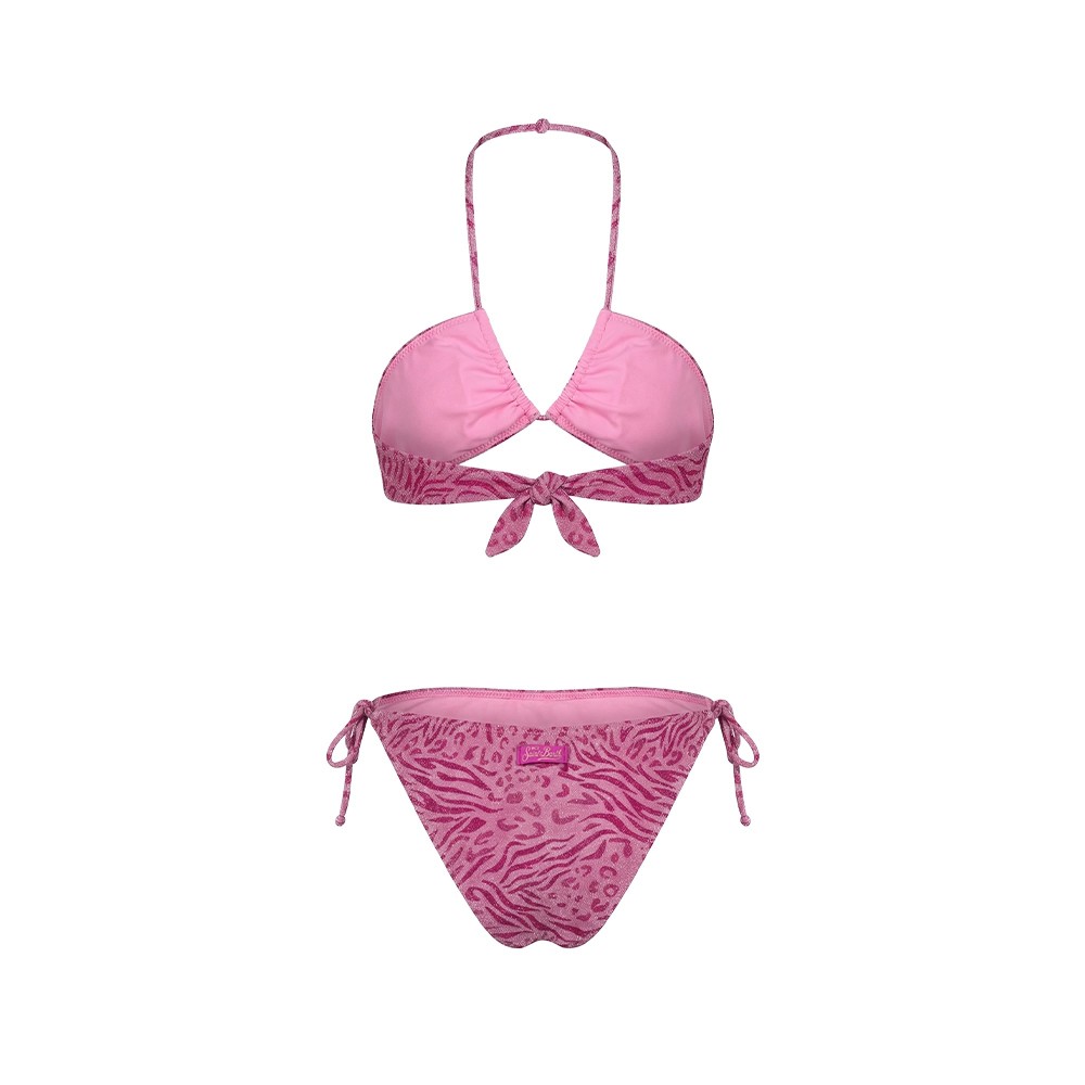 Bikini fucsia da bambina con top a triangolo, zebrato lurex,