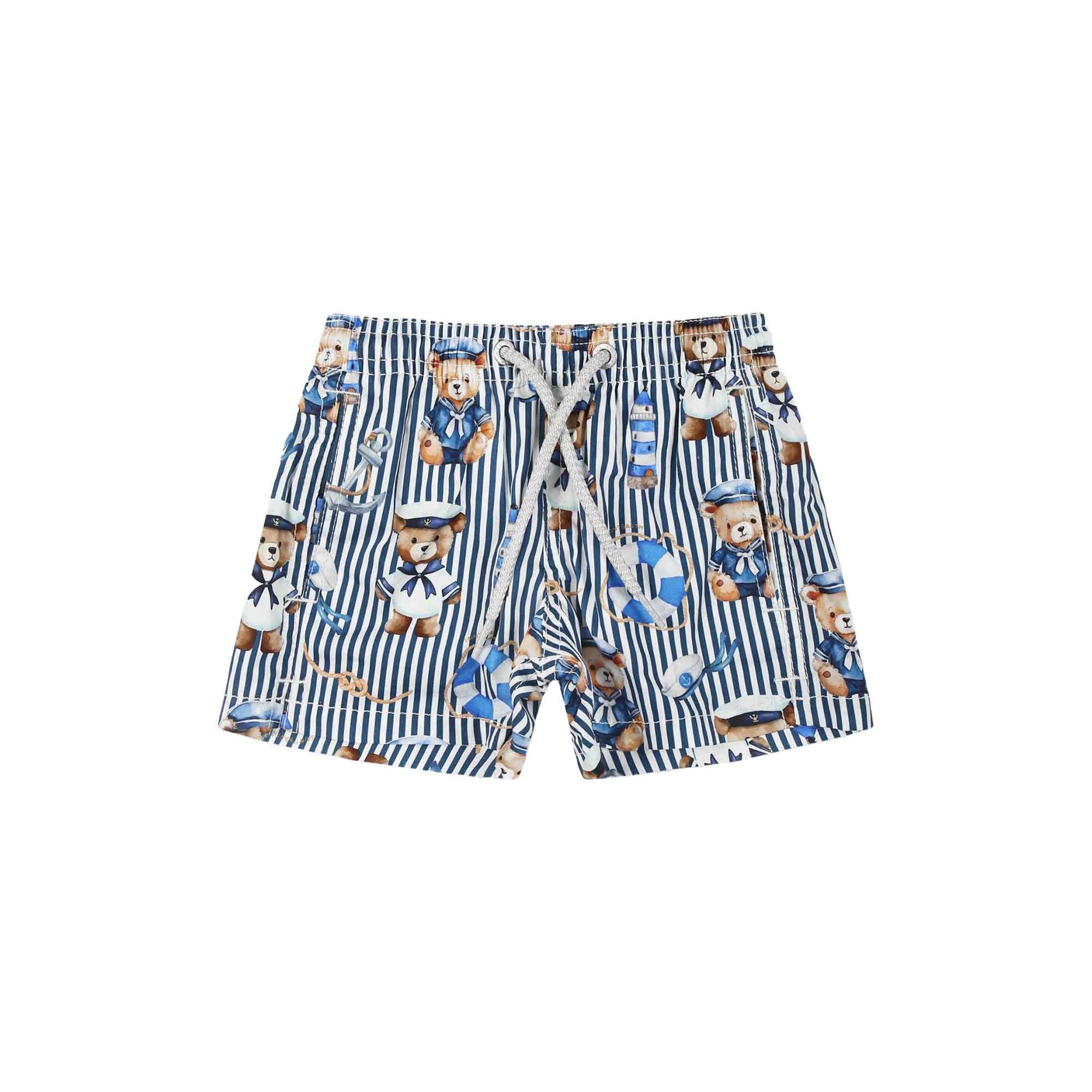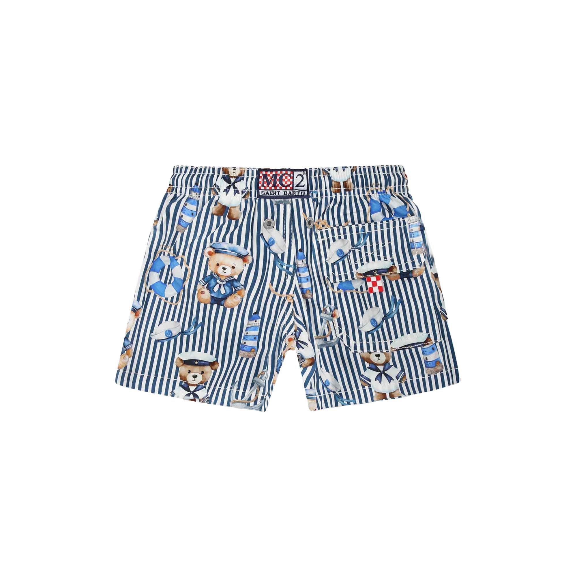 SAINT BARTH Costume a righe blu con orsetti neonato