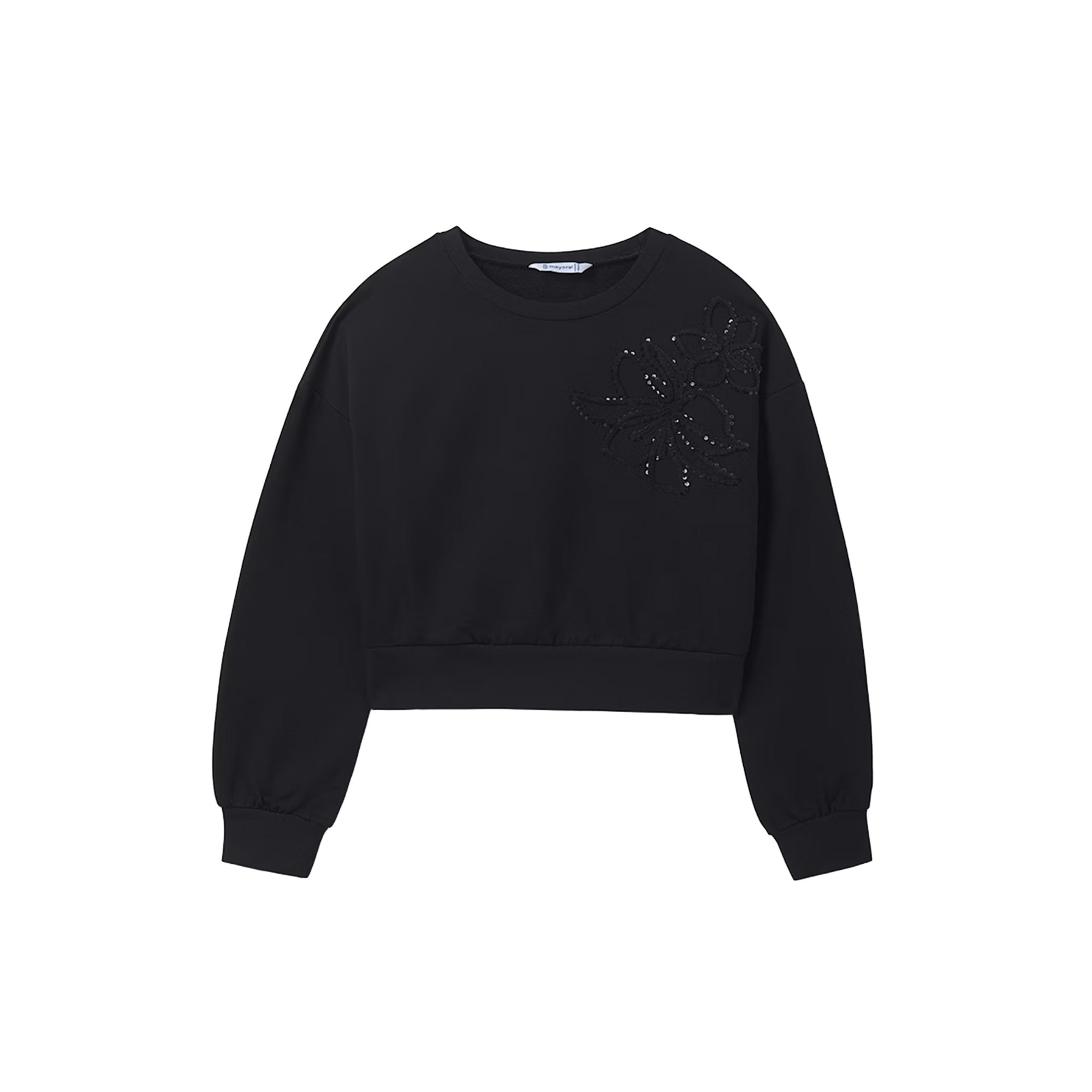 MAYORAL Felpa nera con dettaglio fiore bambina