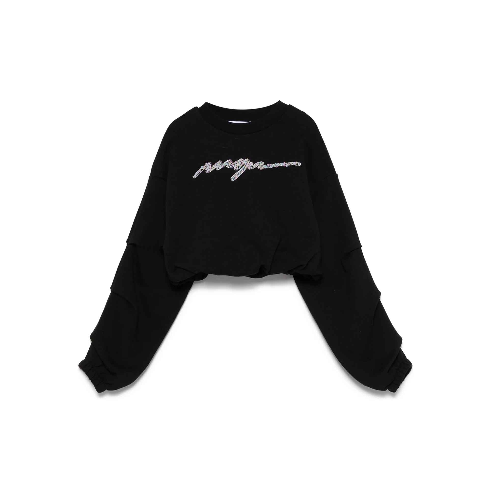 MSGM Felpa nera girocollo con logo in perline bambina